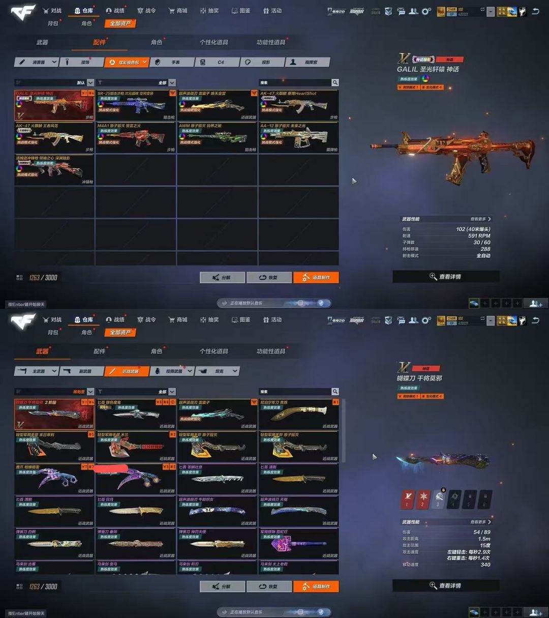 4神话130金轩辕神话全套✅FAMS镭射✅蝴蝶刀干将✅m200猎空✅匕首银色魔鬼✅关小雨✅追击背包✅