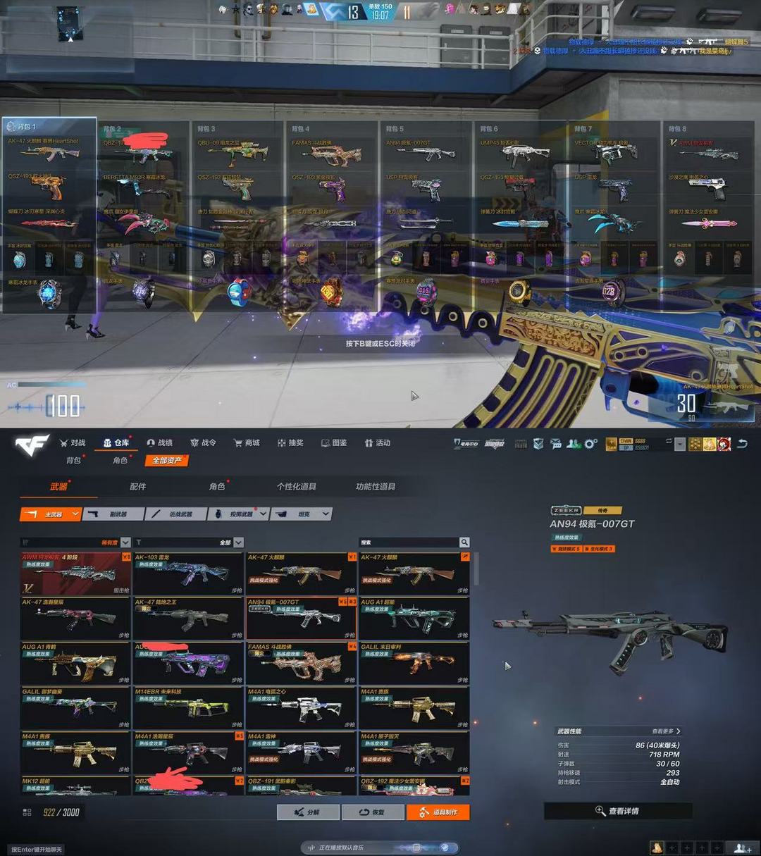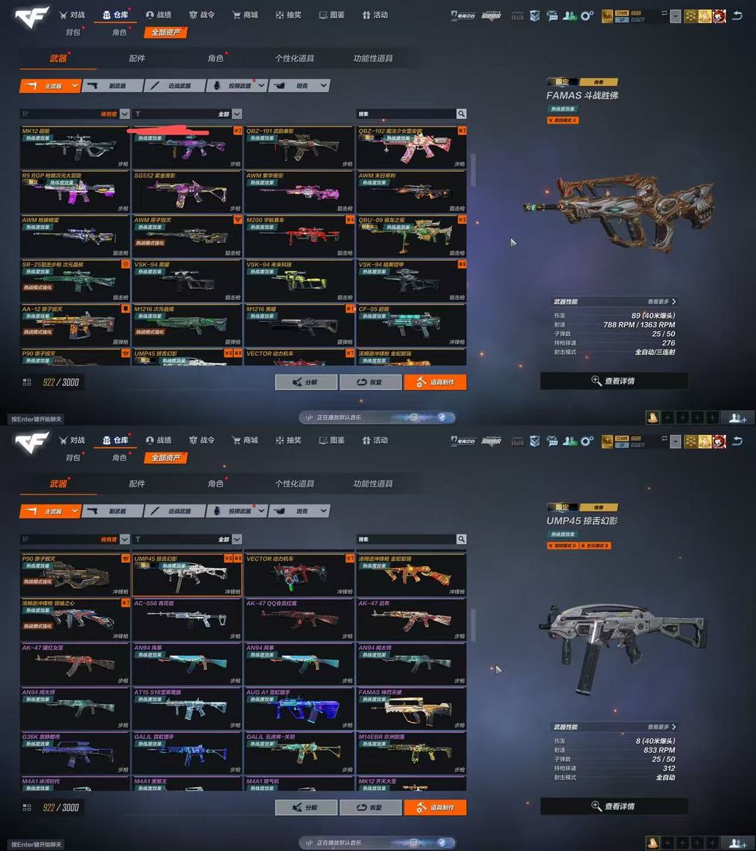 FAM斗战胜佛✅AN94极氪VE极氪✅UMP幻影✅蝴蝶刀冰刃炫彩心炎✅雷龙银月✅弹簧刀冰封✅蕾安娜✅