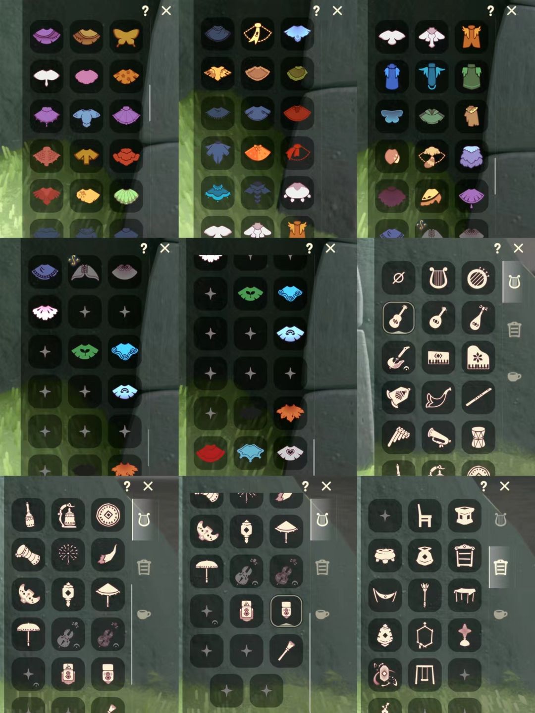 装备描述:常驻:晨岛/胡子|云野/小飞象|雨林/雨妈|霞谷/平菇/卡卡|暮土/龙骨|禁阁/指甲盖(全图毕业) 季节:魔法项链/耳坠/咖喱|圣岛项链/手碟/鲲斗|预言项链/鼓/阿努比斯|梦想项链/凤凰斗|集结项链/麻袋斗|王子项链/玫瑰|风项链/蓝黄羽裤|潜海项链/潜水面具|表演项链/白枭|破晓项链/冥龙斗|欧若拉项链/高领舞裤/透明碟翼斗|追忆项链/鲲灯|夜行项链/绒毛斗|拾光项链/西部帽| 礼包:鹿角|蝙蝠套|绊爱套|乌师|兔子|小鱼|四叶草|橘子|创始人|围巾|瑞雪斗|灯笼|阳伞|狐狸|秋千|小船|茶几 热门物品:白棉裤|毛靴裤|搓澡巾|灯笼裤|连体裤|武士裤|背带裤|矮人|正太|高马尾|白金斗|樱花斗|吉他|高音钢琴|雨伞|星星灯|圣诞坐垫|圣诞椅