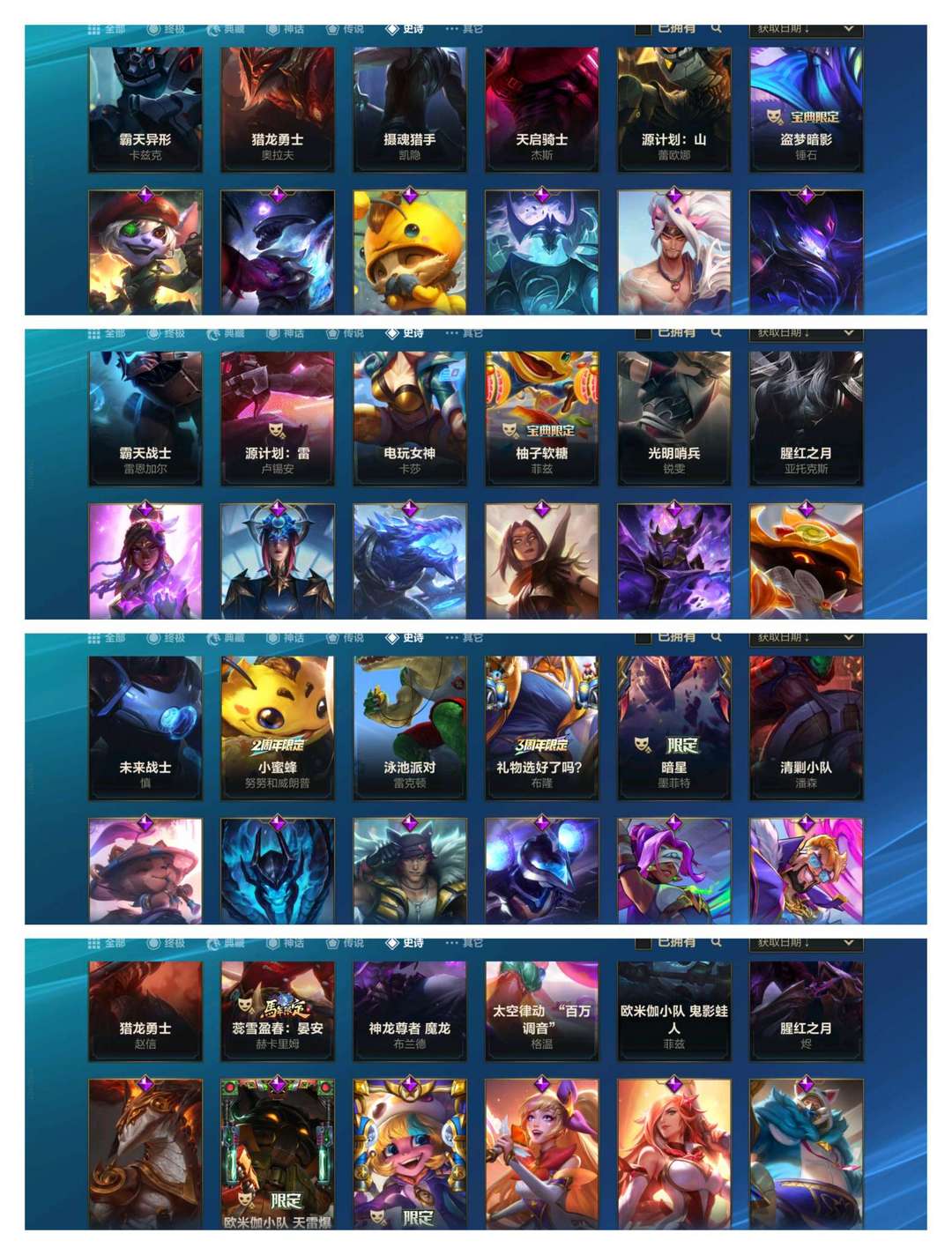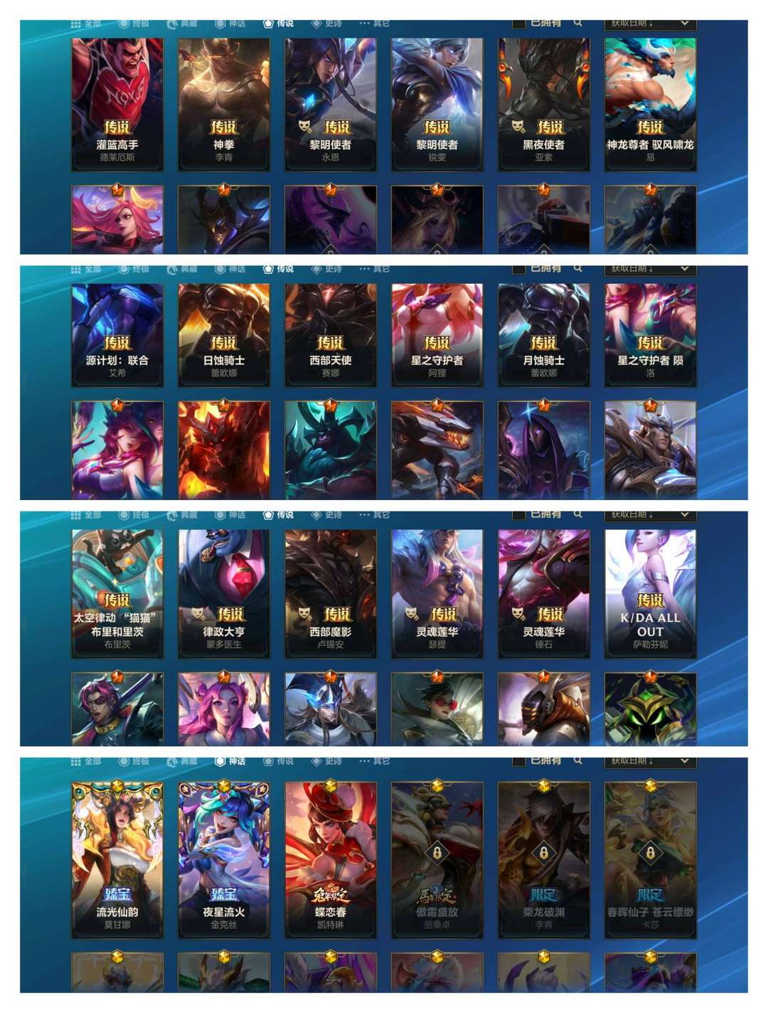 装备描述:3神话 31传说 76史诗 流光翡翠1 信誉5 可排位开黑 全英雄 238皮 星之守护者卡莎 灵魂莲华锤石 ♥ 灵魂莲华万豪 ♥ 黑夜使者压缩 ♥ 黎明使者永恩 ♥ 源计划艾希 ♥ 暗星尊烬 ♥ 源计划鳄鱼 ♥ 神拳李青 ♥ 灌篮高手诺克萨斯 ♥ 地狱之门加里奥 ♥ 黎明使者锐雯 ♥ 神龙尊者易 ♥源计划易 ♥ 神王盖伦 ♥ 天煞劫 ♥ 最终BOSS维恩 ♥ 日月骑士传说双皮蕾欧娜 ♥ 星之守护者狐狸 ♥ 西部魔影赛纳 ♥ 西部魔影卢锡安 ♥ 星之守护者霞 ♥ 星之守护者洛 ♥ 炼狱魔犬狗头 多赛季战令皮肤 多史诗皮肤 全英雄人均带皮