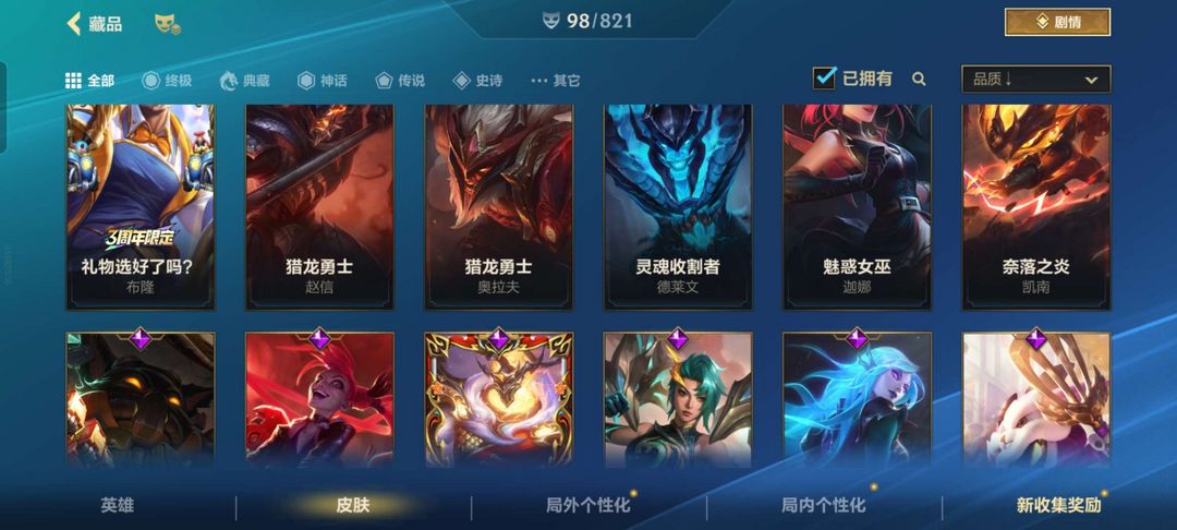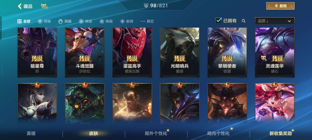 可以打排位 盲僧至高之拳 神拳 乘龙破渊 斗魂觉醒莎弥拉 魔女寡妇 黎明使者锐雯 光明哨兵vn