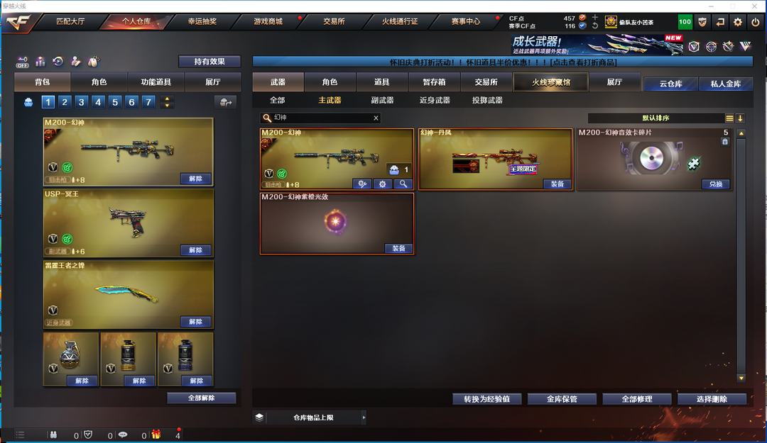 USP冥王+玄豹全套丹凤幻神90V荣耀传说二百豆QBZ独角王者玄武裁决音效卡关小雨荆棘