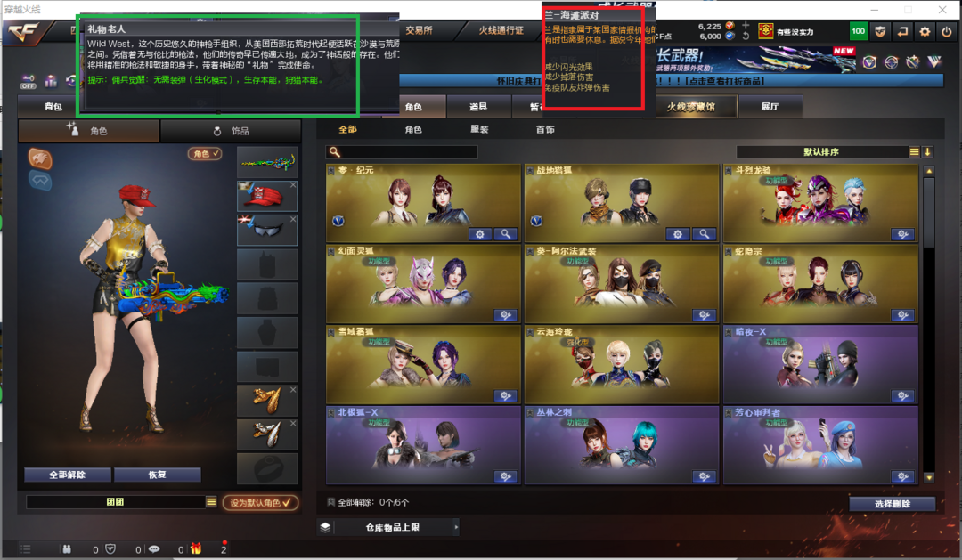 装备描述:排位:可以、、、、、生化全装(可以看生化僵尸血量):无需换弹、6烈、盘龙、炼狱、斯泰尔-幻面灵狐、死亡之眼、MAC-涂鸦、6个生化减速雷、超级对讲机、全部弹匣、、、、、、爆破全装:幻神音效(电竞之星皮肤)、USP珊瑚、幻兽沙鹰、、、、G36幻影、传说圣谕、白虎、QBZ独角-IV、、、幻神音效、裁决音效、雷神音效、、、1套幻兽、2套雷霆、3套神工天巧、、、生化人物(礼物老人)爆破人物(兰-海滩派对)