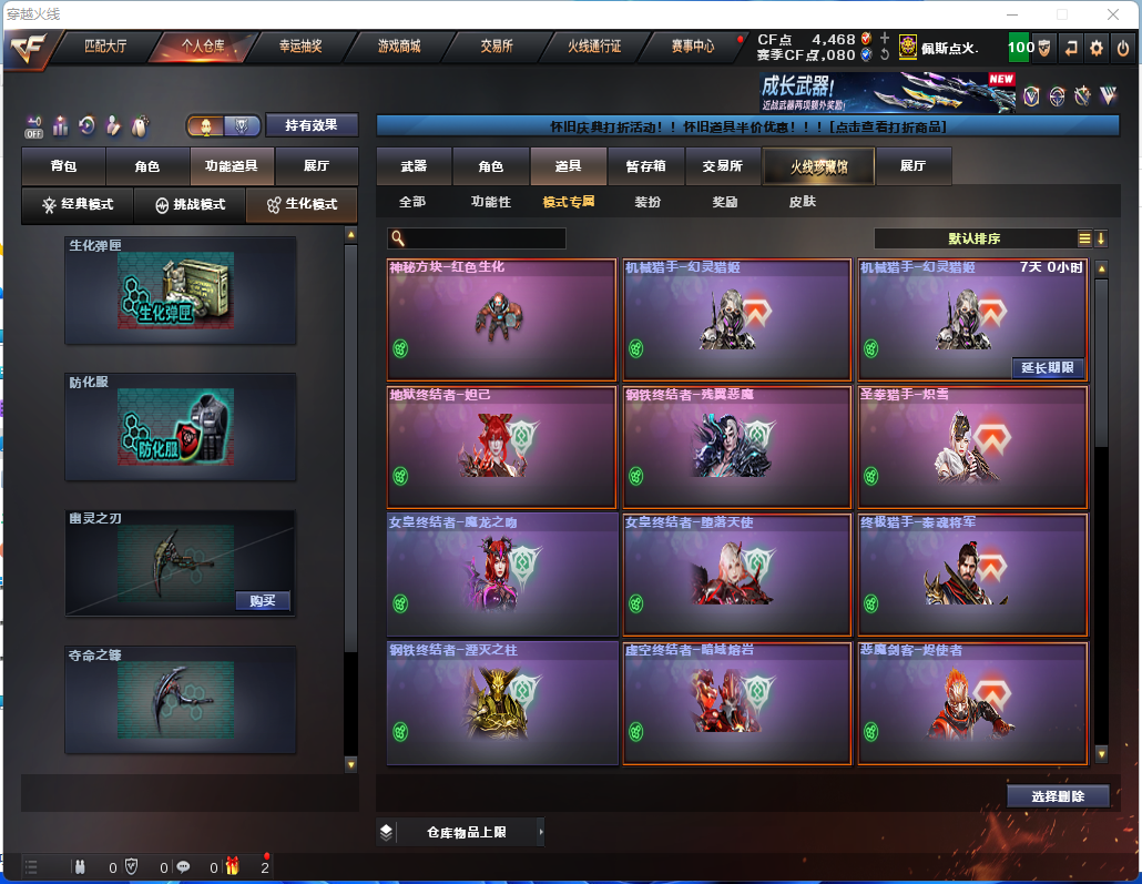 生化炽芒蝶刃6盘6烈✨清道夫斯泰尔蝴蝶幻面灵狐✨四防生化背包✨13个生化皮肤✨炼狱4个皮肤夏佐满榴弹