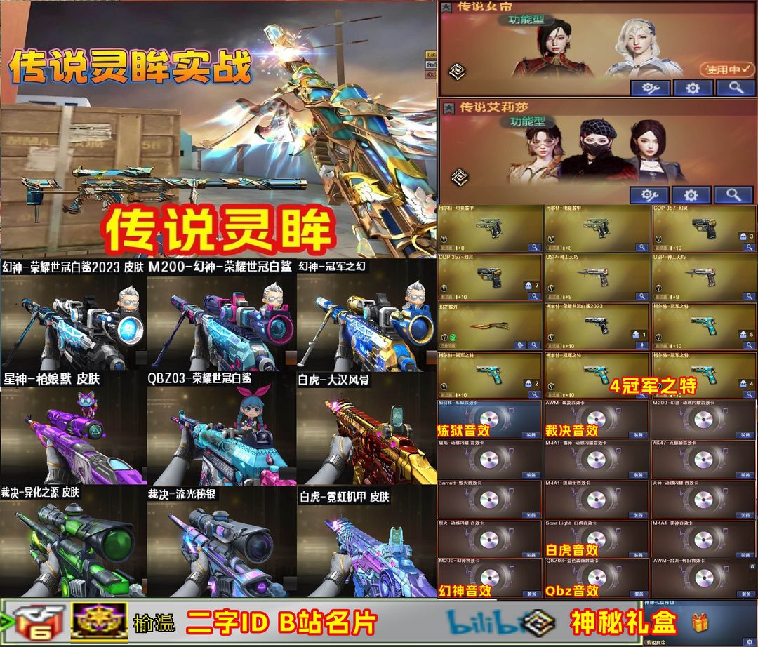 传说灵眸女帝4冠特❤白鲨23巅峰冠军幻神❤流光异化裁决全音效卡❤⑤色白虎Qbz白鲨❤艾莉莎蝶刃生化