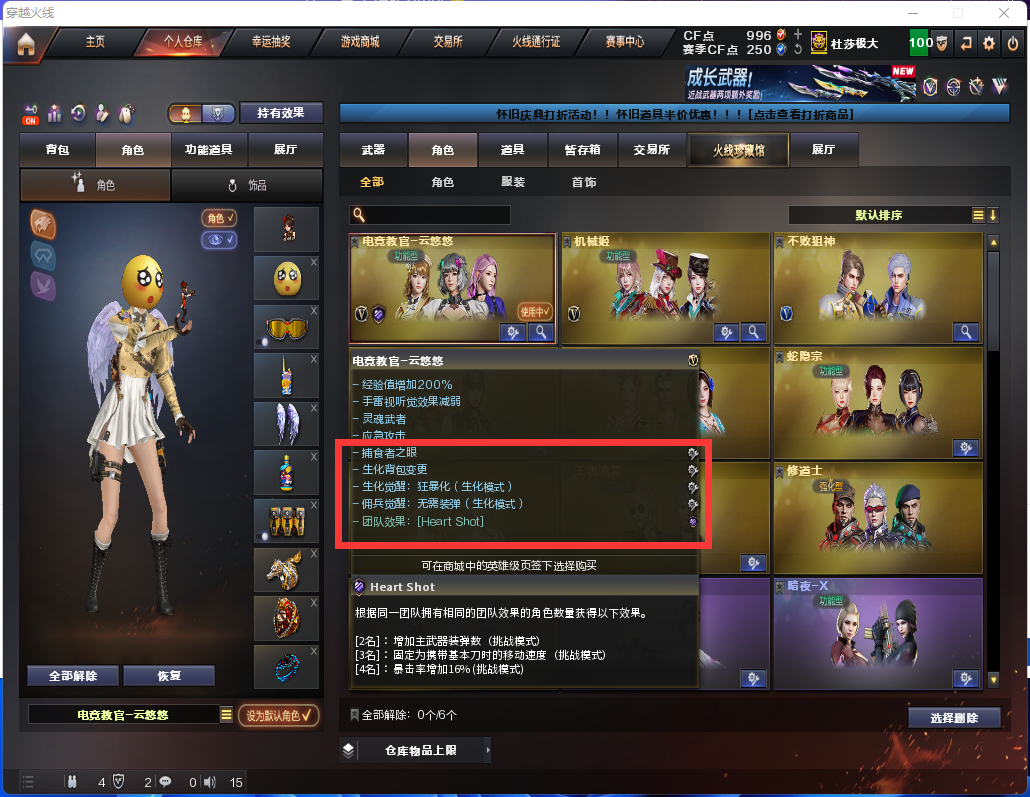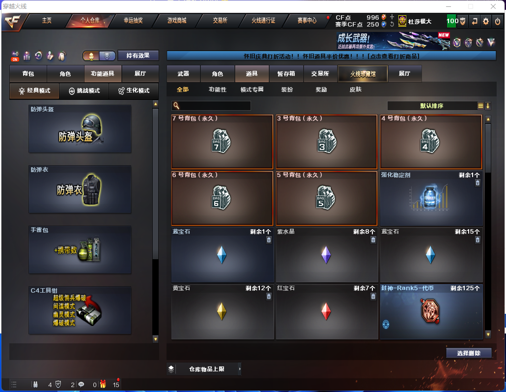 限制: 租号3次及以上 | 撤单率<90%才可租用此帐号装备描述:生化炽芒蝶刃♉幻灵猎姬♉斯泰尔蝴蝶♉四防云悠悠♉竞技幻神♉6烈♉生化背包无需换弹♉不退包♉无6盘6烈