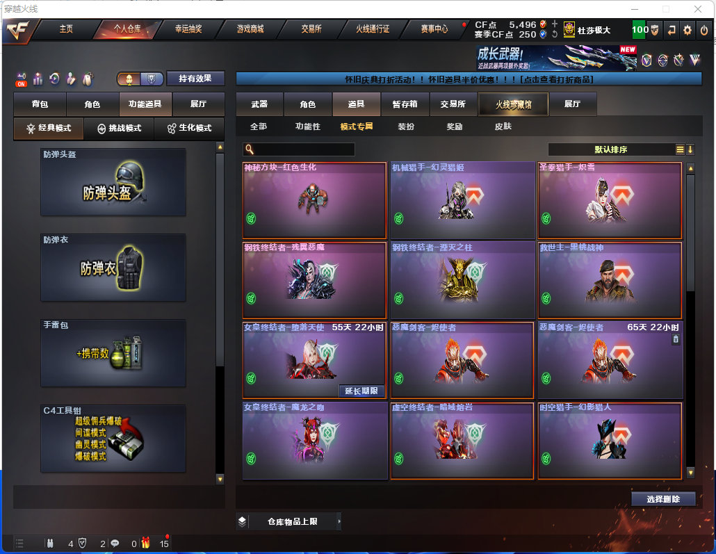 生化炽芒蝶刃♉时空猎手♉16个生化皮肤♉斯泰尔蝴蝶小毒蜂♉竞技幻神可排位♉满榴弹不退包♉无6盘6烈