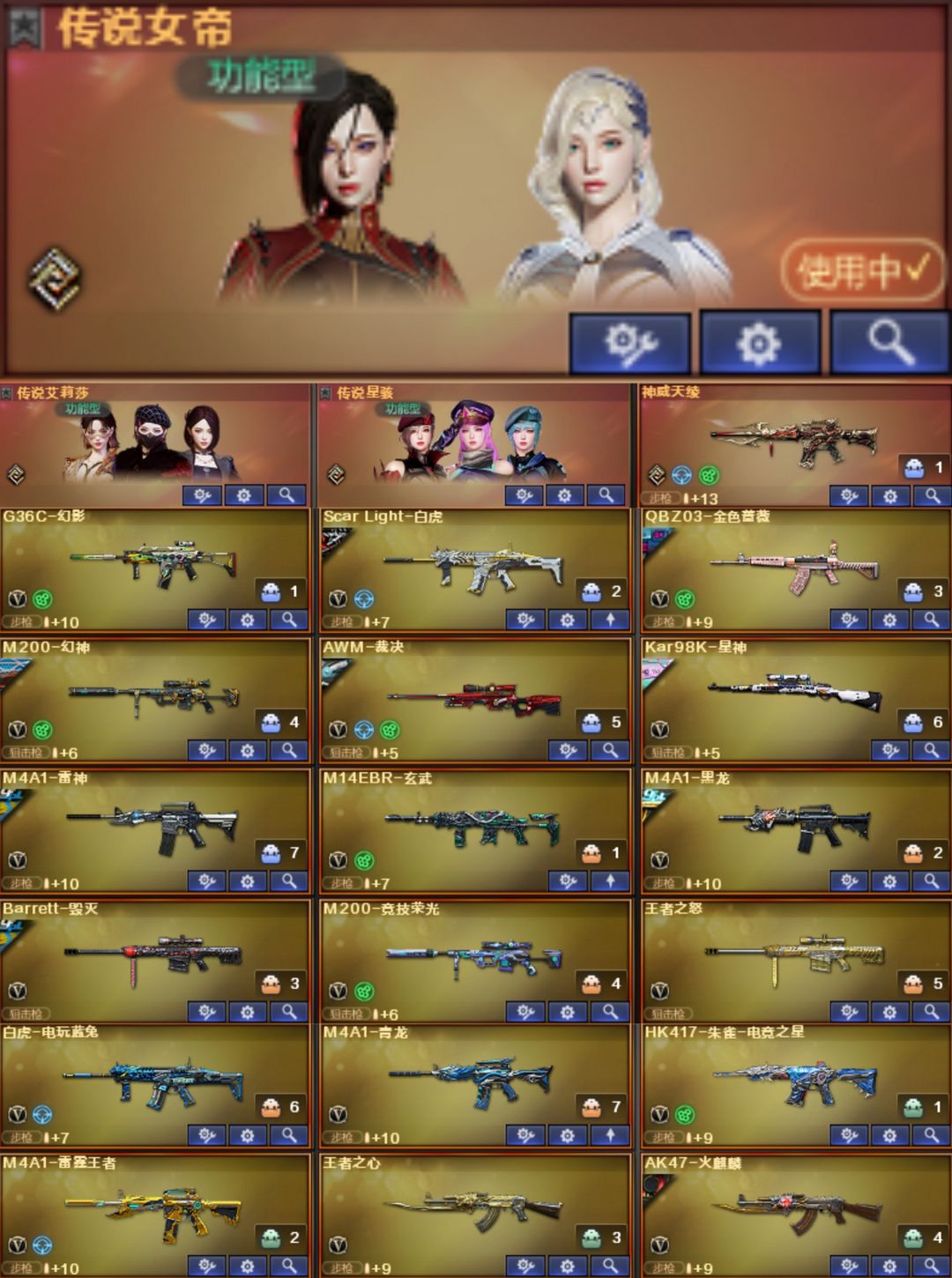 三花聚顶女帝天绫幻影⭐幻神卡星火EP宠儿7皮⭐白虎常旭百战⭐裁决卡6皮⭐星神卡巅峰AG⭐满副手冠刃