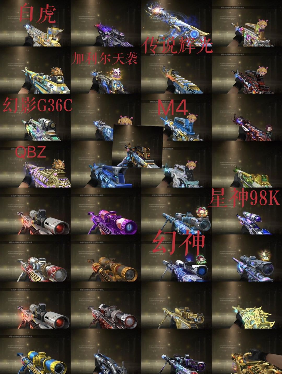加利尔天袭♉️传说星骇辉光♉️幻影G36♉️星神裁决幻神音效皮肤♎️冠军之特COP♉️炽芒蝶♉️白虎