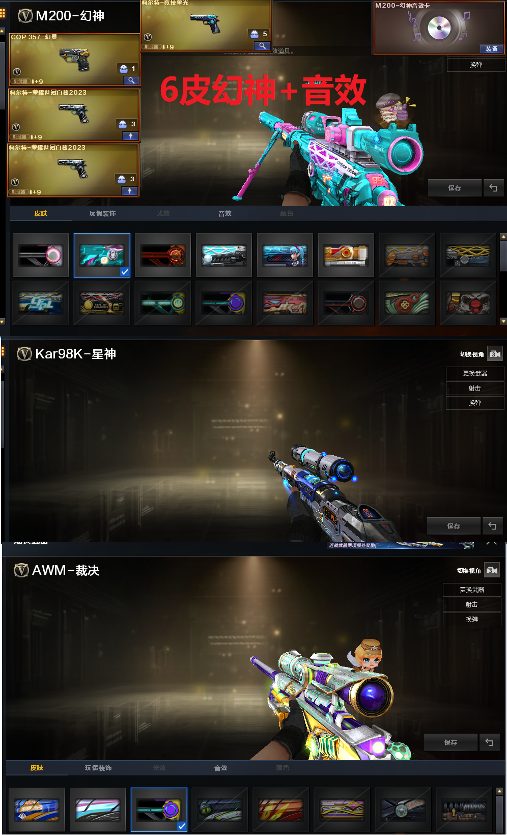 装备描述:排位:可以、、、、、、、、、、、、、爆破四防:幻神6皮+音效(传奇欧欧、宠儿、23白鲨、24AG冠军、丹凤、白鲨皮肤)、98K星神、、、、、COP幻灵、2个23白鲨柯尔特、柯尔特竞技荣光、、、、、白虎、QBZ冠军蔷薇、炽芒蝶刃、、、幻神音效、雷神音效、毁灭音效、、、2套幻灵、2套竞技荣光、、、爆破四防(王者刀锋、王者涂鸦)