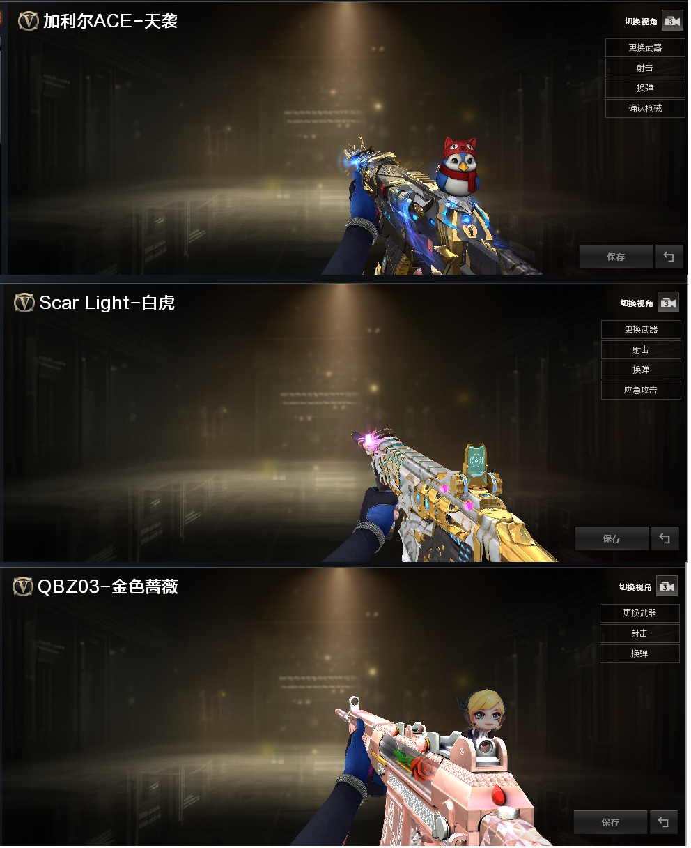 装备描述:排位:可以、、、、、、、、、爆破四防:幻神(KZ皮肤)、USP神工天巧、柯尔特-百战金芒、加利尔ACE-天袭、白虎、QBZ金色蔷薇、、、1套神工天巧、、、爆破四防(隼、宋雨琦)