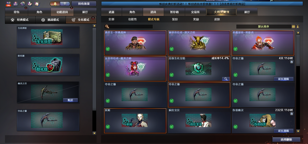 竞技荣光套装云悠悠炽芒蝶刃传说破晓裁决白虎+挑战模式6+168甄选次元套装+生化幽灵全角色