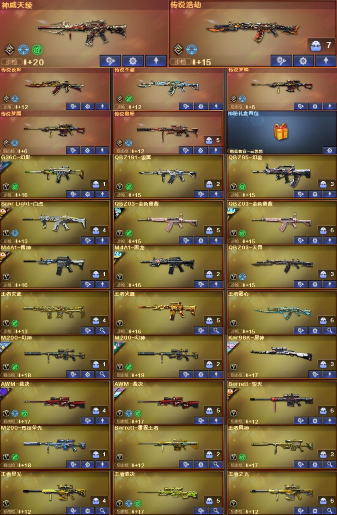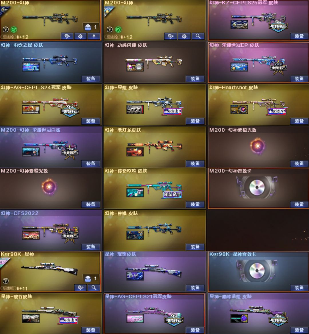 3套幻兽⭐天绫浩劫幽瞳圣谕幻影⭐幻神卡KZ12皮⭐裁决卡4皮⭐QBZ卡宠儿十皮⭐星神卡4皮⭐白虎3皮