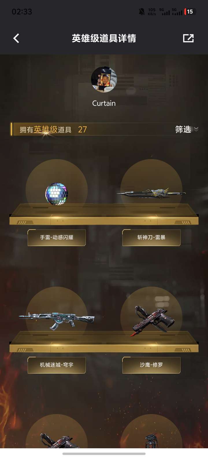 幻神+幻神音效卡,黑骑士+黑骑士音效卡,王者之锋,王者葵,和若干英雄级武器,和投掷物套装