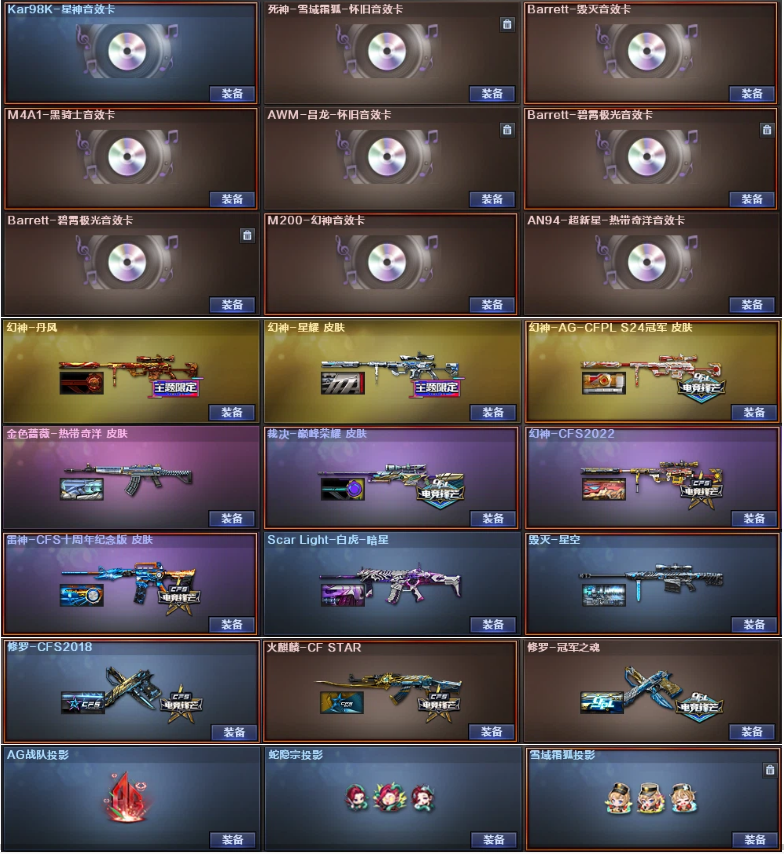 传说圣谕✨幻神4皮新AG星耀音效卡+星神音效卡+裁决星霆✨幻影白虎QBZ蔷薇小艾+无冕之王炽芒蝶刃
