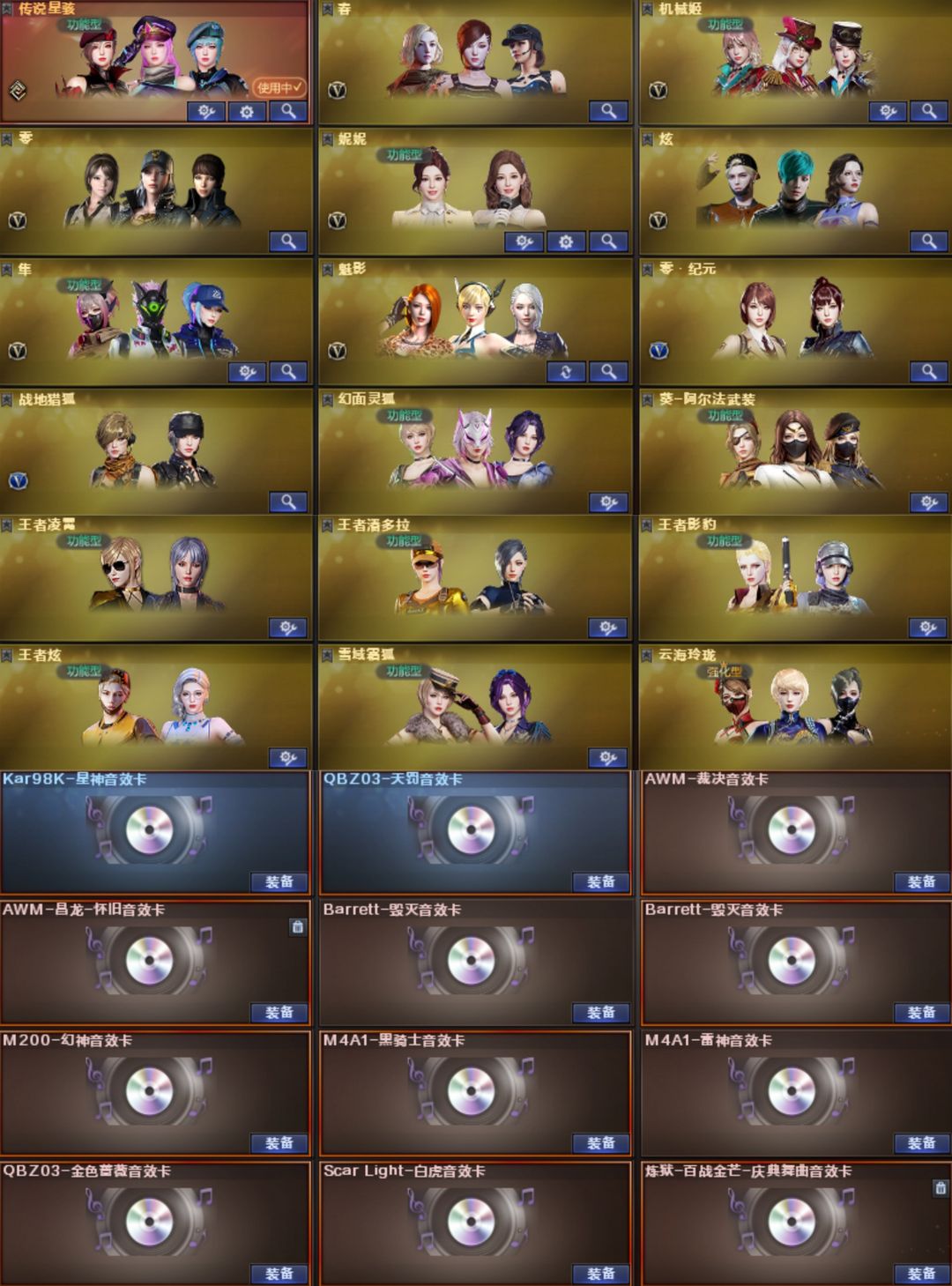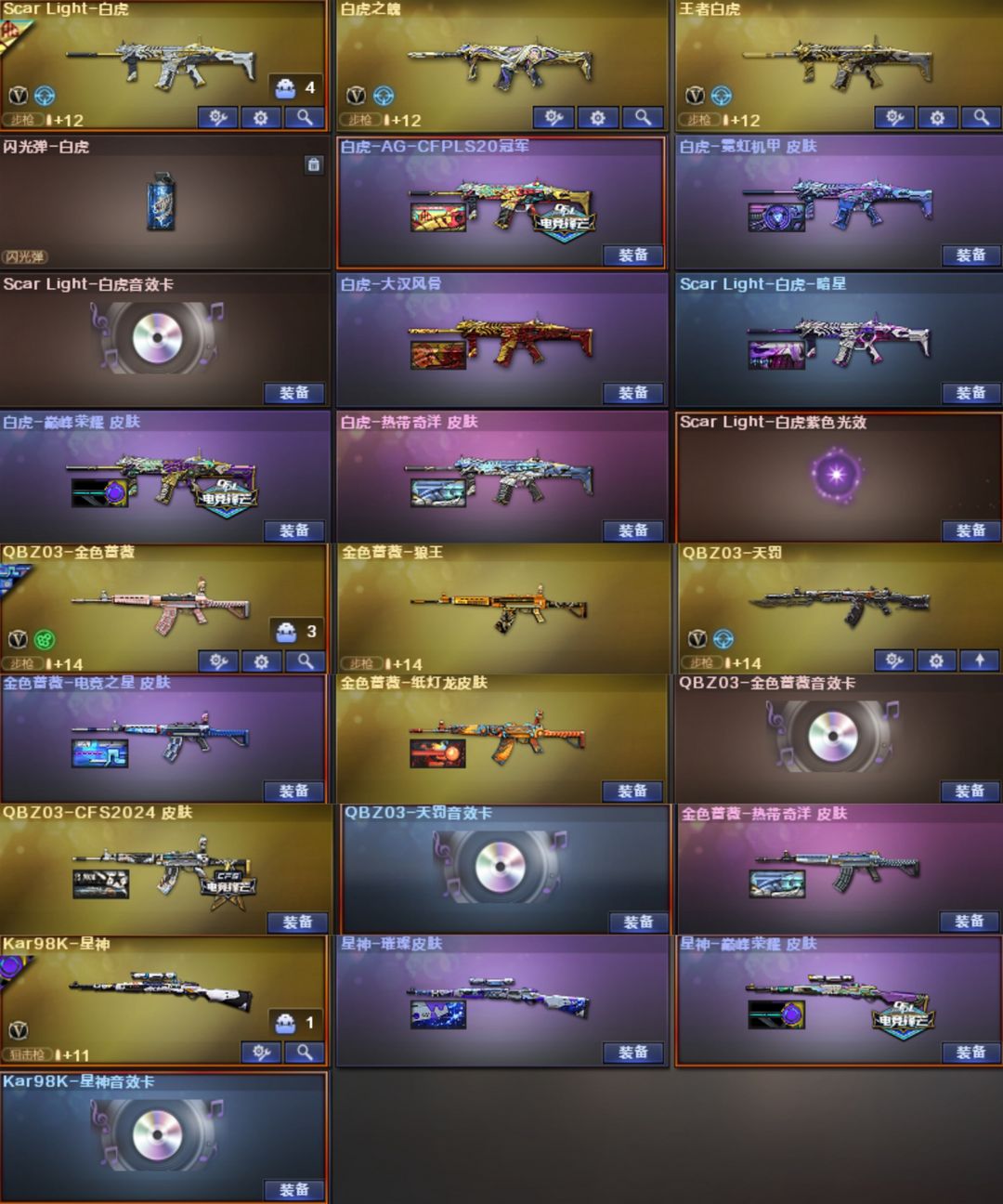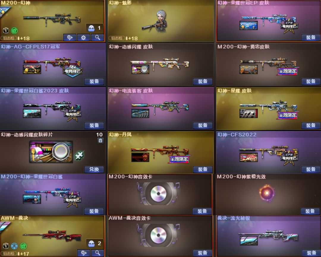EP套星骇妮妮幻影天戎⭐幻神卡EP白鲨十皮⭐裁决音效卡流光⭐白虎AG巅峰6皮⭐QBZ电竞4皮满副手
