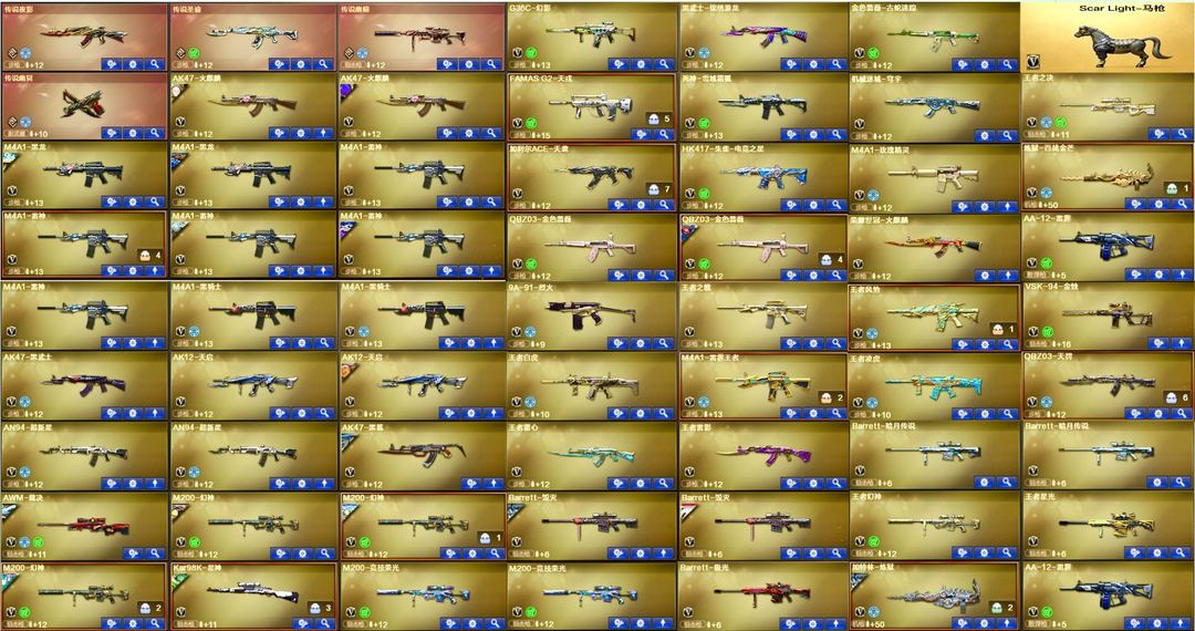 装备描述:传说:幽瞳+幽冥+夜影+圣域+星骇4防+加利尔 主流狙击:3幻神14皮带卡(欧欧,白鲨,女团,EP,KZ~),王者幻神,金蚀 主流狙击:星神/6皮带卡,裁决/5皮带卡,毁灭12皮带卡 主武器:王者白虎,王者凌虎,金色蔷薇6皮带卡,G36C幻影 主武器:ACE加利尔,天绒,天罚带卡,雷神14皮带卡,黑骑士7皮带卡 副武器:2雷暴,3王者雷暴,6冥王,1神功天巧 副武器:EP柯尔特,2冠军之特,2白鲨柯尔特,3竞技荣光柯尔特 副武器:COP雷霆,COP雪域霜狐 四防人物:(云悠悠~晴雅~隼),鹰,关小雨,兰精国英雄,妮妮, 近战:Knife荣耀世冠EP,炽芒蝶刃,7屠龙8皮,4龙啸,4擎天,玄豹丛林匕首,唐刀,白鲨猫猫手套 投掷:基本拉满,16套左右 音效卡:基本拉满 登录有问题可右上角