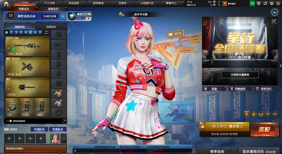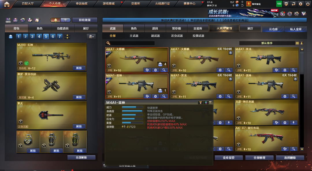 装备描述:便宜爆破号,王者武器:王者之刺-觉醒版;王者之翼-觉醒版;炫金骑士 英雄武器:AK47-黑武士;屠龙;龙啸;麒麟刺;AK47-火麒麟;AWM-天龙;Barrett-毁灭;汤姆逊-烈龙;RPK-盘龙;沙鹰-修罗;加特林-炼狱;沙鹰-天神;M4A1-雷神;M4A1-黑龙;M200-幻神;高爆手雷-雷暴;闪光弹-雷暴;烟雾弹-雷暴;斩神刀-雷暴;AK-47-猩红传说;无影-神兵利器;Barrett-暗月传说;QBZ03-金色蔷薇;Kar98K-星神;擎天;M4A1-青龙;黑骑士-海王 装饰品:火麒麟-CF STAR;雷神-暗月;王者刀锋玩偶;AWM-天龙-传奇70KG;AK47-火麒麟-传奇EVEN;AK47-黑武士-361;雷神-虎将;火麒麟-华夏之心;火麒麟-轻羽皮肤;毁灭-星空;关羽玩偶;屠龙-荣耀之锋;毁灭-黑大圣皮肤;CFS 击杀图标;零-水下丽影玩偶;M200-幻神-黄忠皮肤 角色:瞳;审判者;堕天使;铁骑;潘多拉;灵狐者;嘉年华灵狐;木兰;救世主;夜玫瑰-X;圣诞潘多拉-X;影武者-X;邱刚敖;剑齿虎-X;精英部队;影武者;龙儿;芳心审判者;暗夜-X;青霞仙子;职业选手;甜心偶