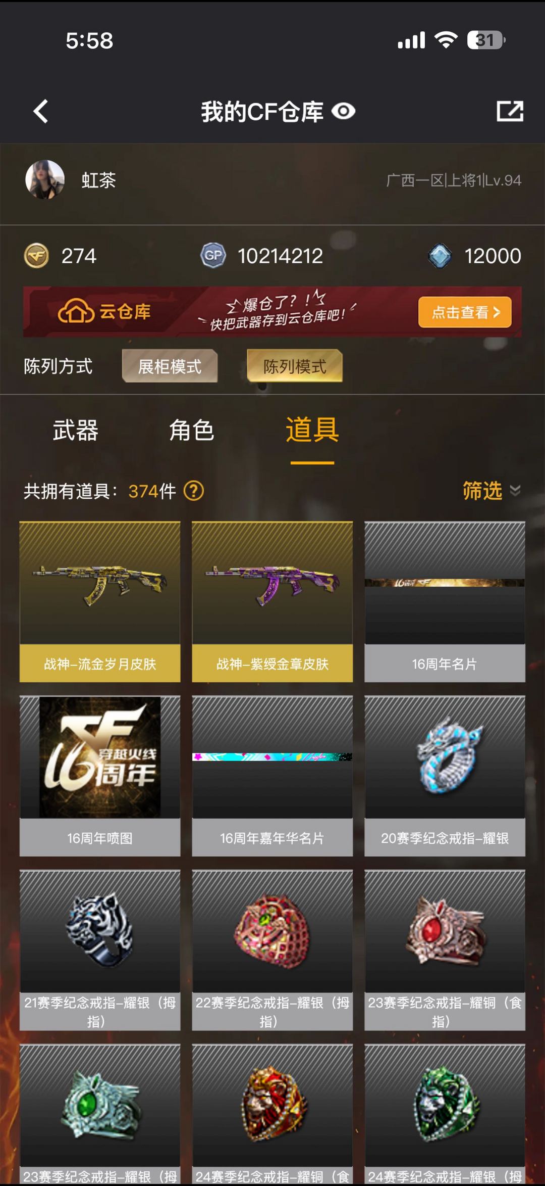 游戏区服:穿越火线-电信区-广西一区