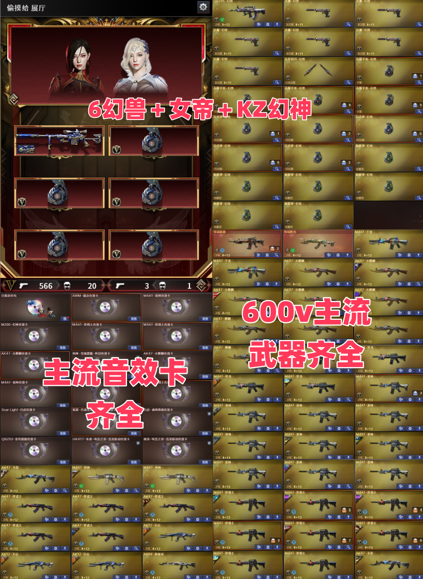 限制: 租号10次及以上 |装备描述:女帝 6幻兽 Kz EP妮妮 加利尔天袭 黄金柯尔特 满副手 音效卡齐全 皮肤质量天花板