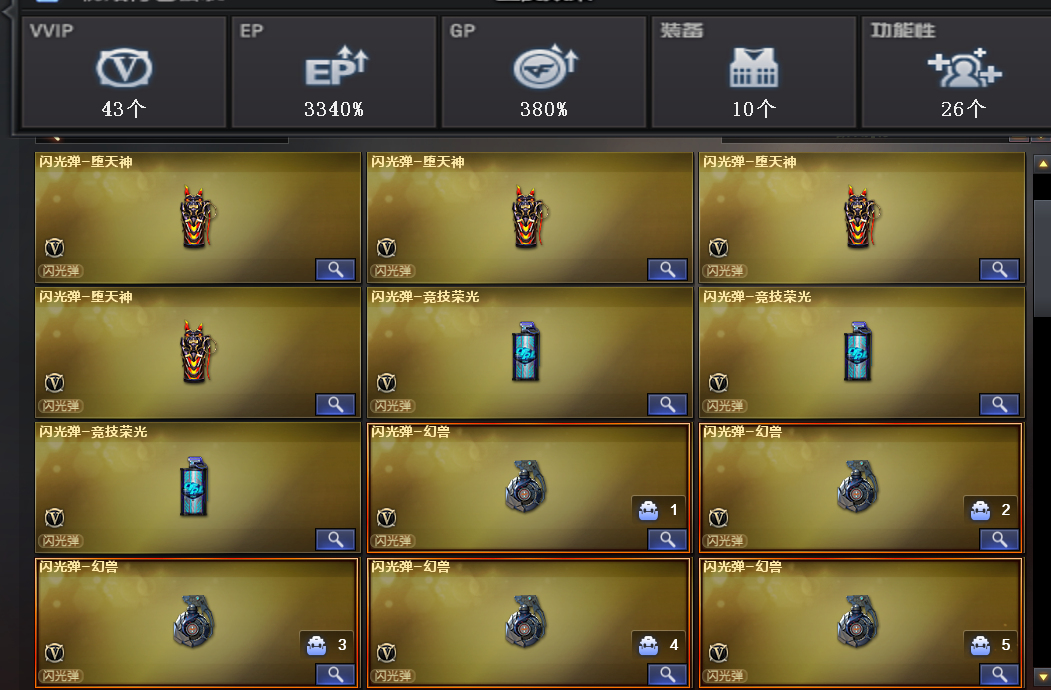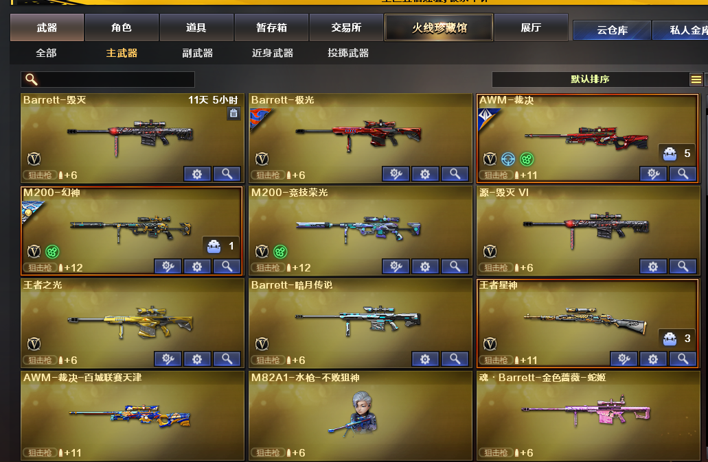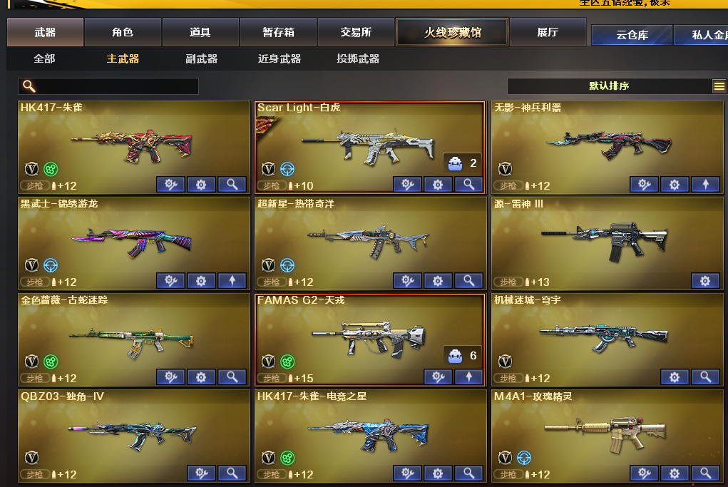 装备描述:英雄武器:FAMAS G2-天戎;USP-神工天巧;Barrett-毁灭;机械迷城-穹宇;超新星-热带奇洋;龙啸-热带奇洋;手雷-热带奇洋;黑武士-锦绣游龙;烈龙-云海游龙;擎天-云海游龙;手雷-云海游龙;龙啸;龙啸-烈火龙威;烈火-动感闪耀;屠龙-动感闪耀;手雷-动感闪耀;天神-动感闪耀;无影-神兵利器;AK47-火麒麟;柯尔特-冠军之特;传说暗裔;Scar Light-白虎;闪光弹-竞技荣光;烟雾弹-竞技荣光;高爆手雷-竞技荣光;擎天-竞技荣光;柯尔特-竞技荣光;M200-竞技荣光;QBZ03-金色蔷薇;黑骑士-海王;RPK-盘龙;HK417-朱雀;M200-幻神;AK-47-猩红传