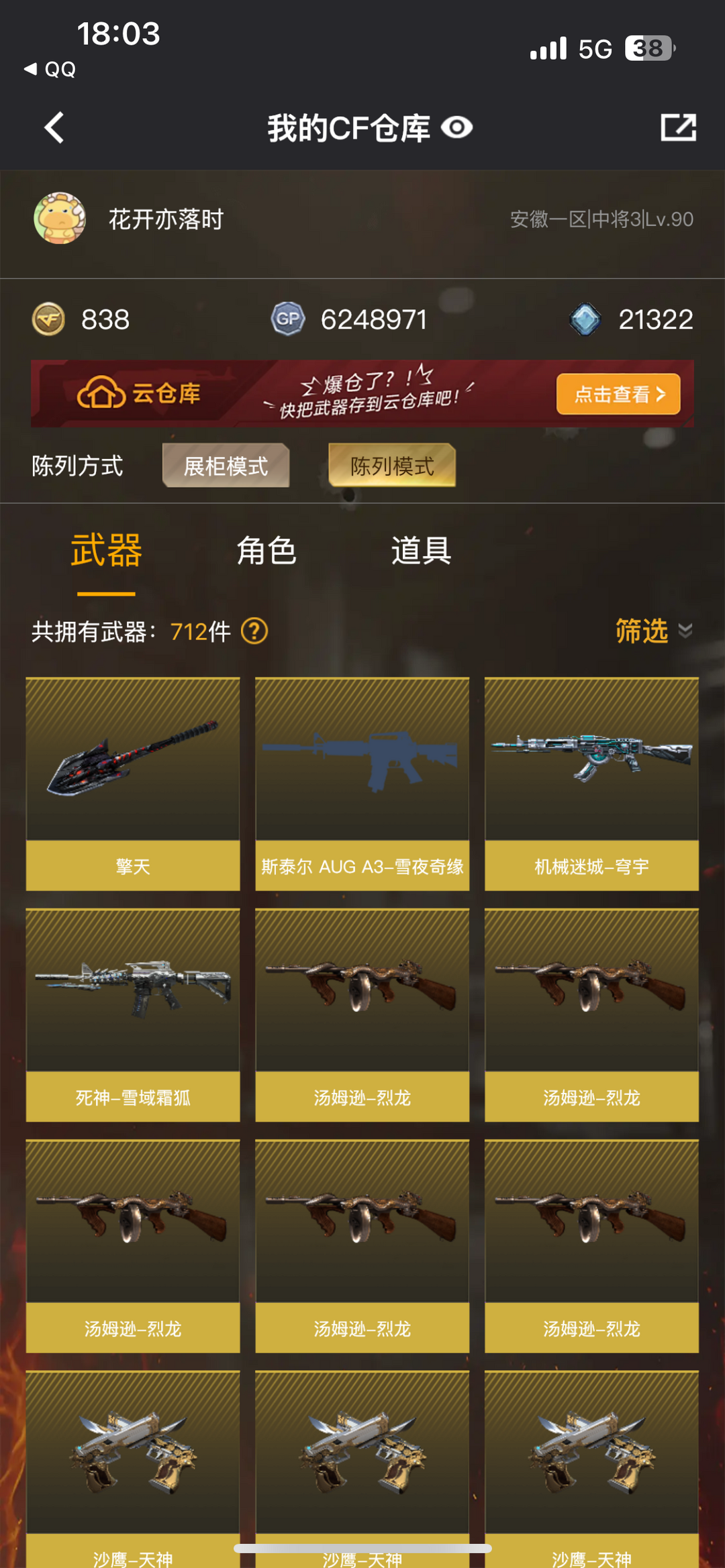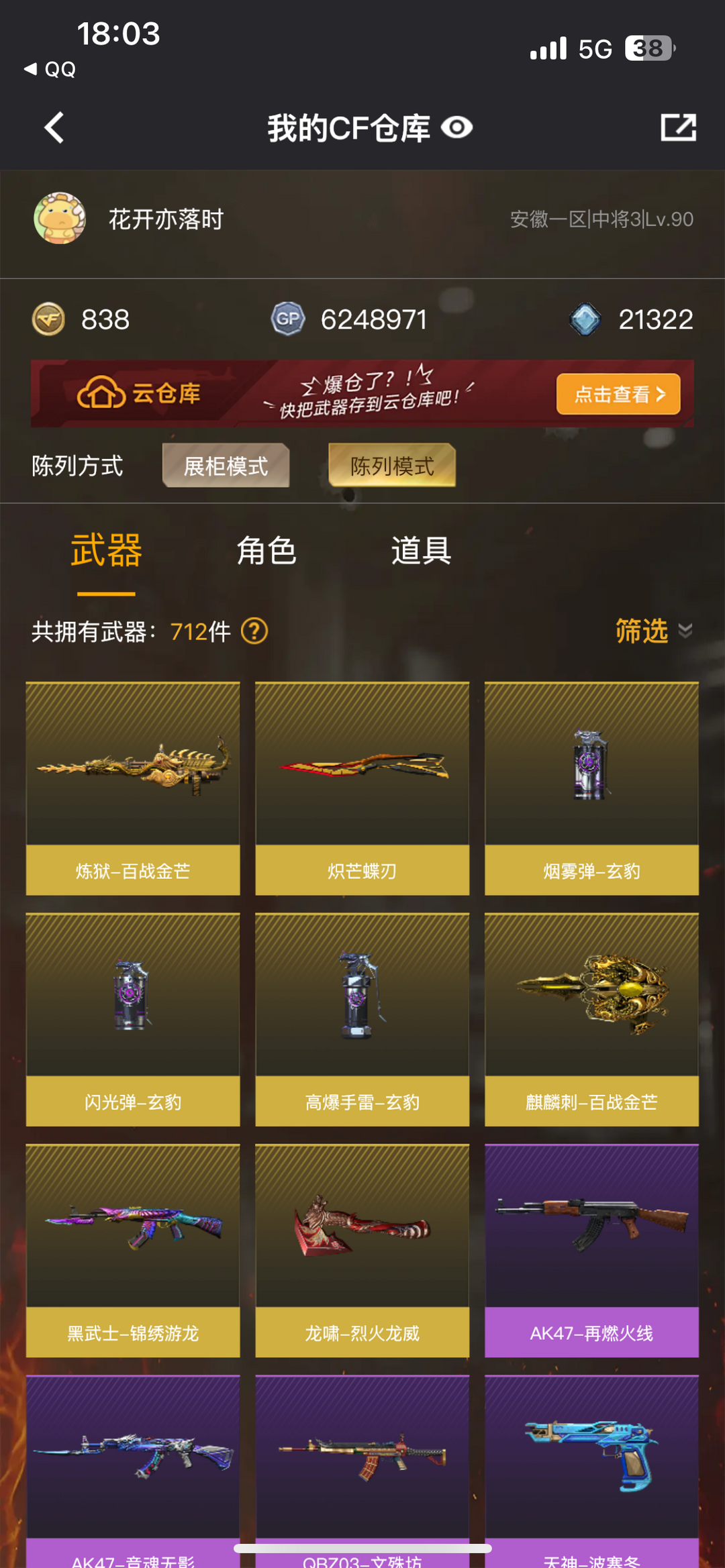 装备描述:白虎之魄王者星神,幻神幻影天戎天袭,5烈斯太尔枪娘,隼,星骸,生化爆破双修,裁决音效卡皮肤蝴蝶刀