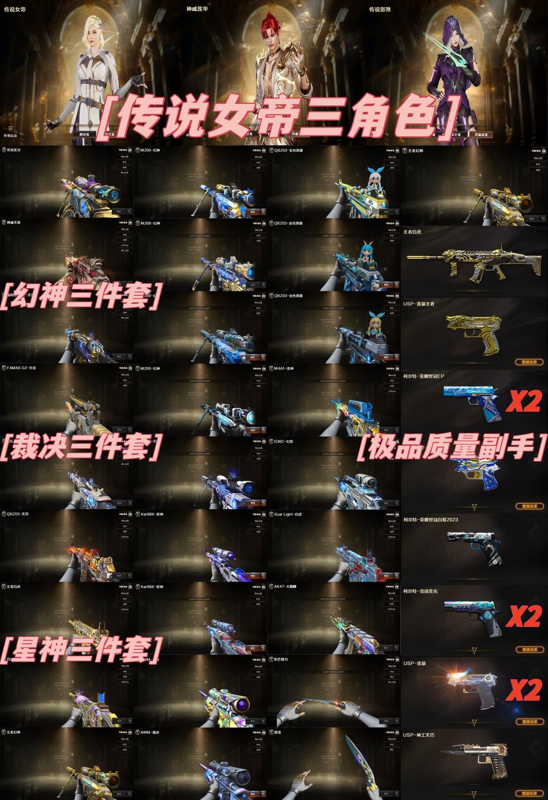限时福利❤️传说女帝影煞✨神威莲华✨幻神冠军+kz+ep三件套✨裁决巅峰带卡✨幻影G36/天戎天袭✨