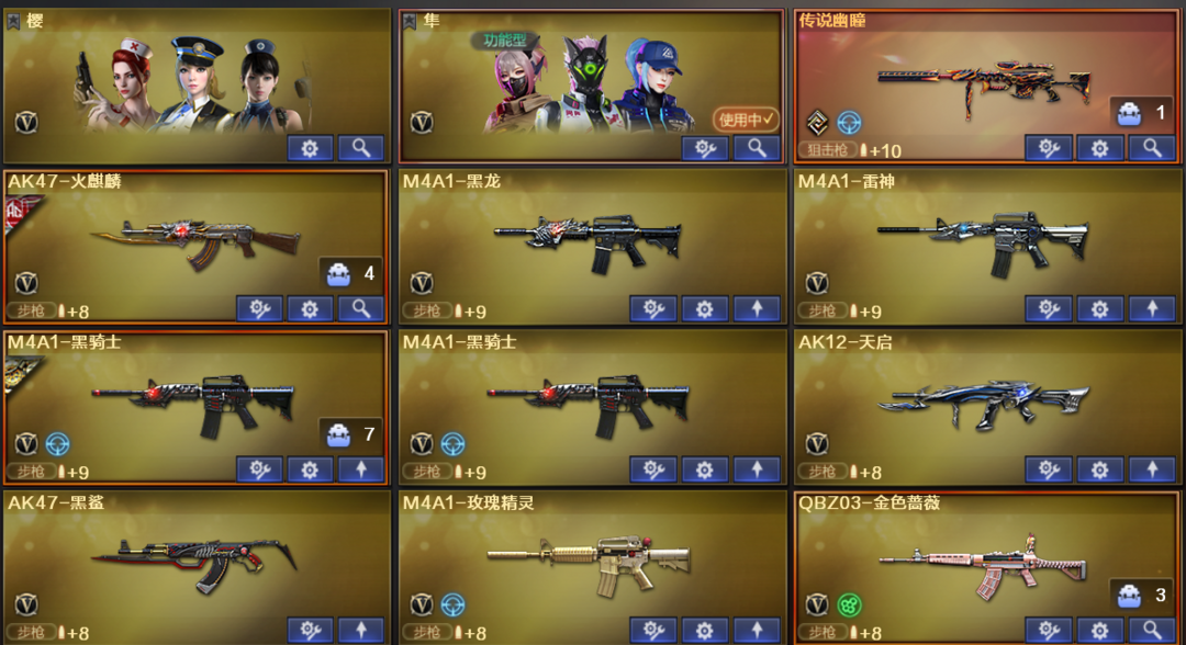 传说幽瞳QBZ蔷薇裁决火麒麟AG黑骑士耀金修罗耀金天启炫金毁灭炫金天龙