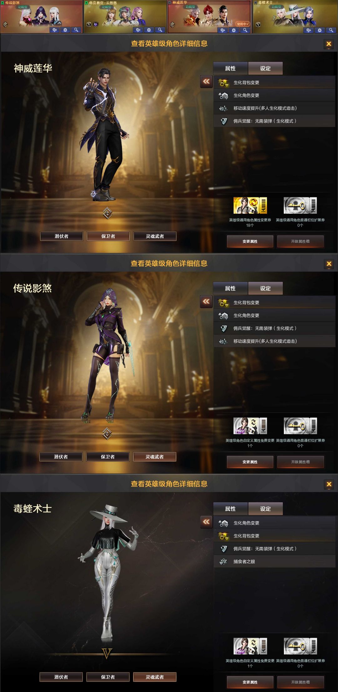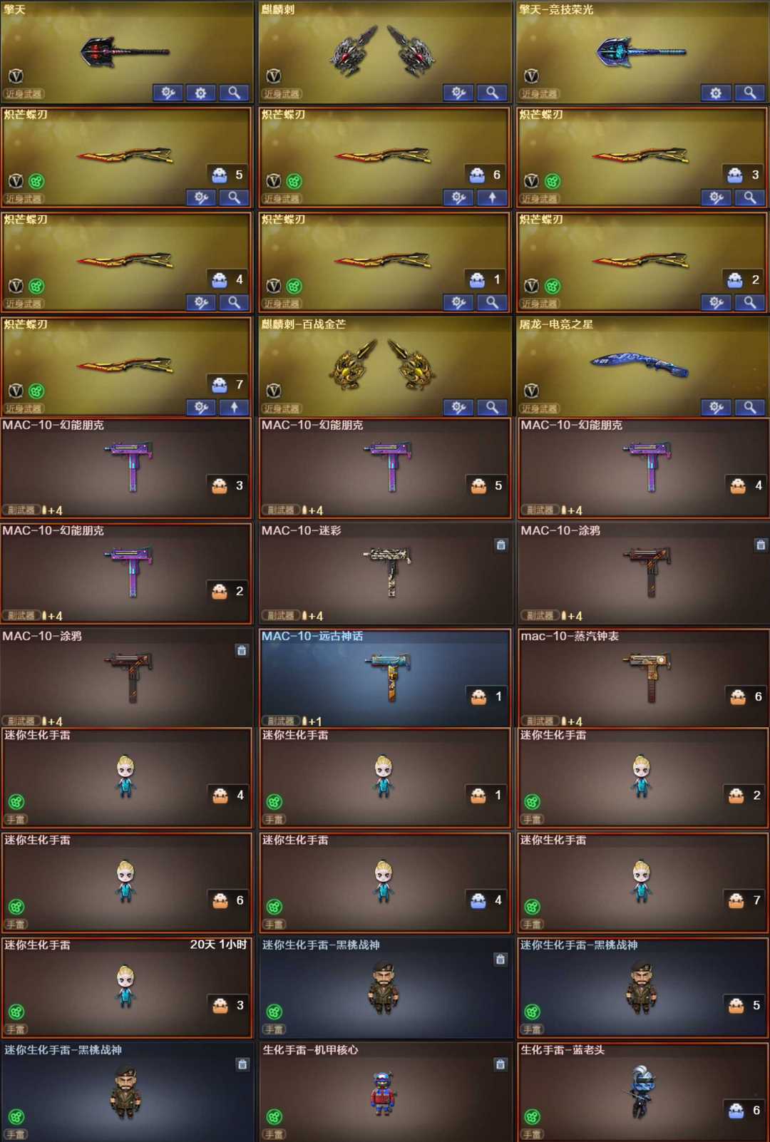 神威莲华4防⭐影煞4防⭐毒蝰4防⭐炽芒蝶刃✖️7⭐玄武✖️2⭐裁决➕音效卡三件套⭐满生化⭐满弹匣⭐