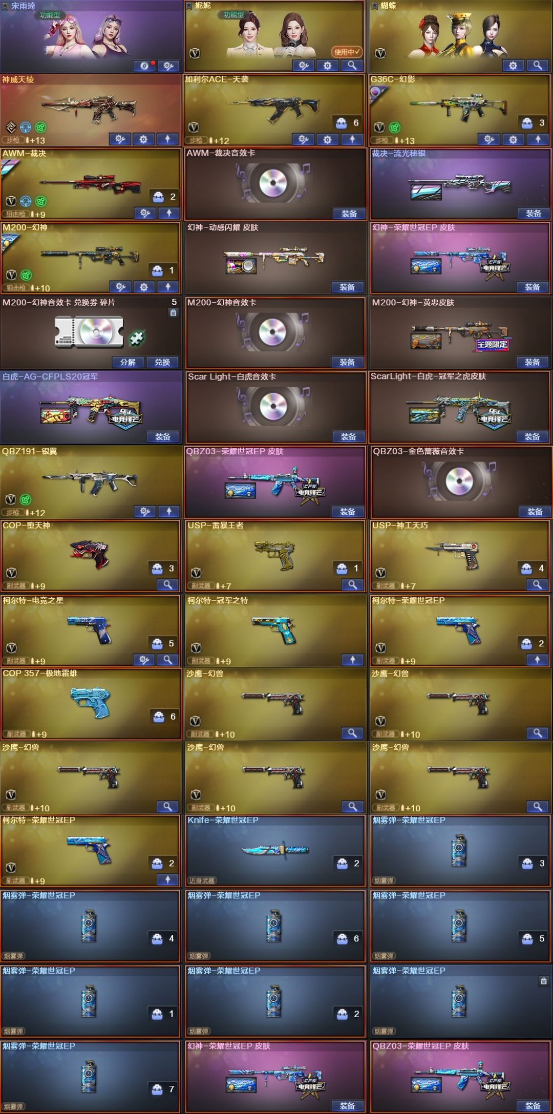 100豆⭐幻兽5套EP小刀全套幻神EP裁决音效卡⭐妮妮宋雨琦天袭幻影银翼3把柯尔特雷暴王者USP蝶刃