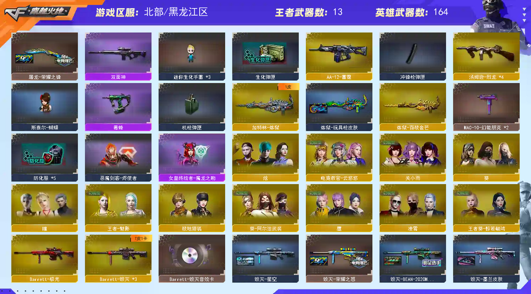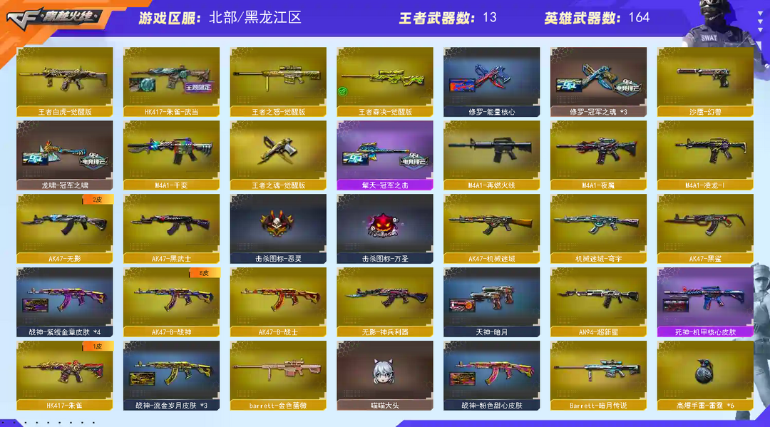 78豆【北部】幻兽+幻神宠儿6皮幻音+冠特薇刃+usp3柯尔特3cop3+裁决套+星神+白虎套蔷薇套