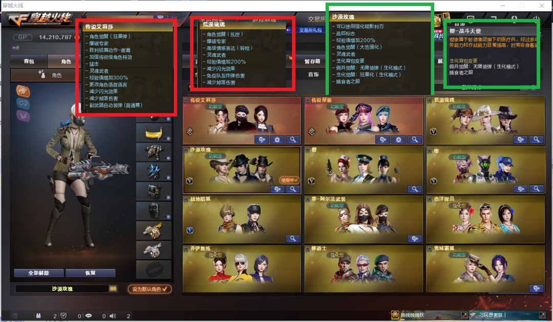 装备描述:排位:可以、、 -----------------生化四防极品:(更换背包、可以查看生化僵尸血量):无需换弹、6烈6盘、炼狱-泡泡象、毒蜂、斯泰尔蝴蝶、异变清道夫-小人枪、双面神、死亡之眼、MAC-涂鸦、2把炽芒蝶刃、手斧镜、14个生化减速雷、超级对讲机、全部弹匣、、、、爆破全装:幻神(动感闪耀皮肤)、柯尔特电竞之星、、、、、G36幻影、八面凌龙、QBZ独角、FAMAS G2-天戎、QBZ191-银翼、QBZ金色蔷薇、白虎、传说暗裔、、、白虎音效、玄武音效、炼狱音效、、、电竞装甲手雷、2套玄豹、、、爆破人物(传说艾莉莎、传说星骇、荒漠琉璃)、生化人四防(沙漠玫瑰、隼、樱-战斗天使)