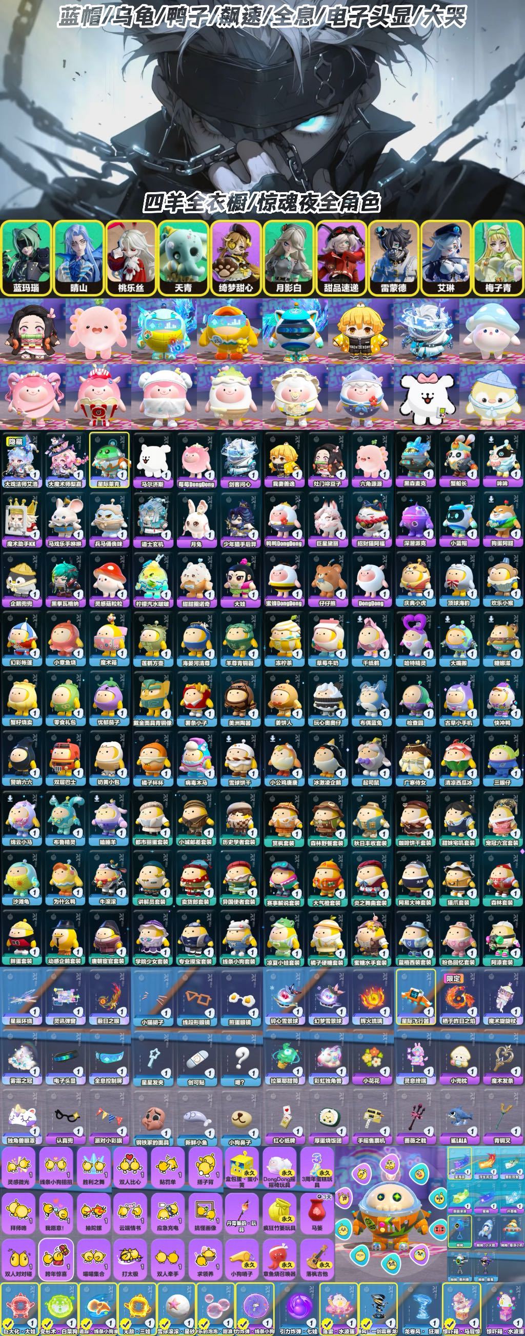 星际莱克线条小狗小羊全衣橱/古早蓝帽为什么鸭沙滩龟大哭全息鬼灭草莓羊灵感菇丑鱼幻觉框