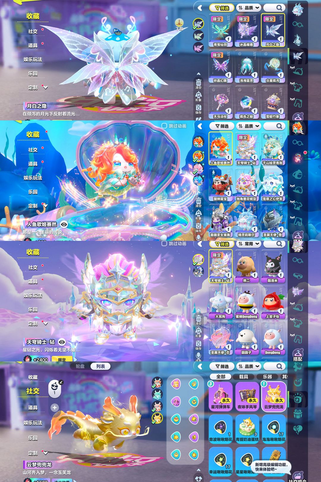 龙车三翅膀✨月白青鸾仙羽碎晶幻翼✨天穹骑士人鱼独角兽青岚醒狮圣女伊芙圣翼天使精灵✨小羊大耳狗酷洛米熊