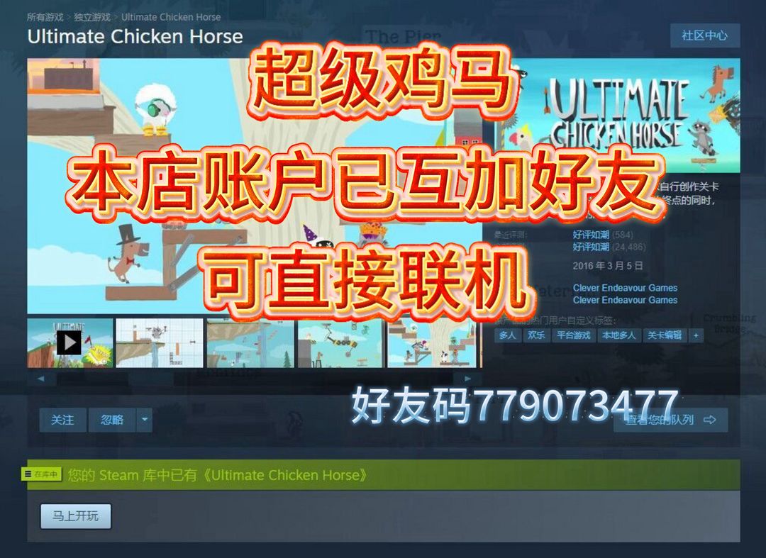 限制: 撤单率<50%才可租用此帐号装备描述:超级鸡马♋️终极版⭐️Ultimate Chicken Horse⭐️正版可联机⭐️合作闯关