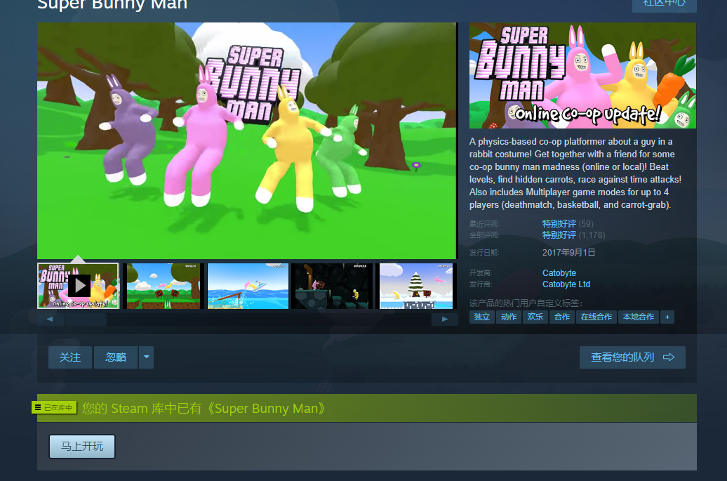 超级兔子人❤️Super Bunny Man⭐️终极版⭐️合作闯关⭐️社区开通⭐️可联机⭐️极致体验