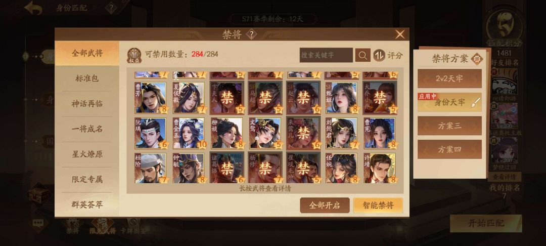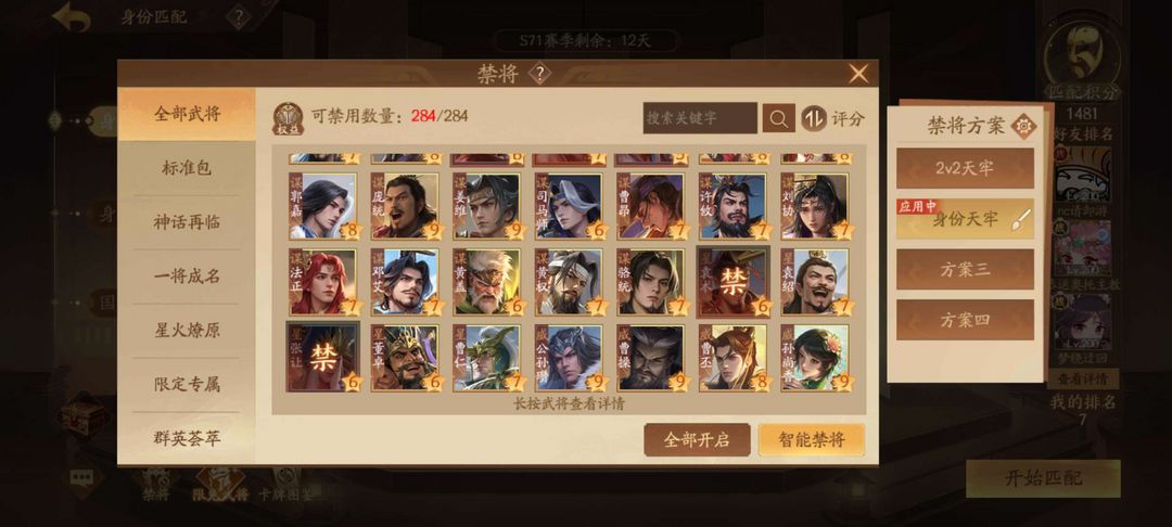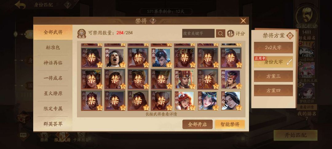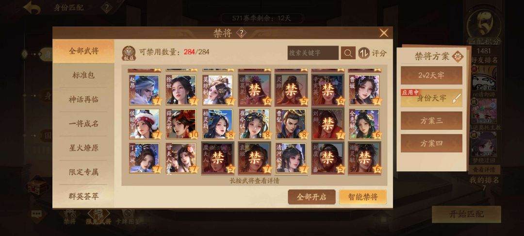 到时不顶364将国都护4威3神3大谋9小谋5乐7豆蔻6锦瑟2钟灵