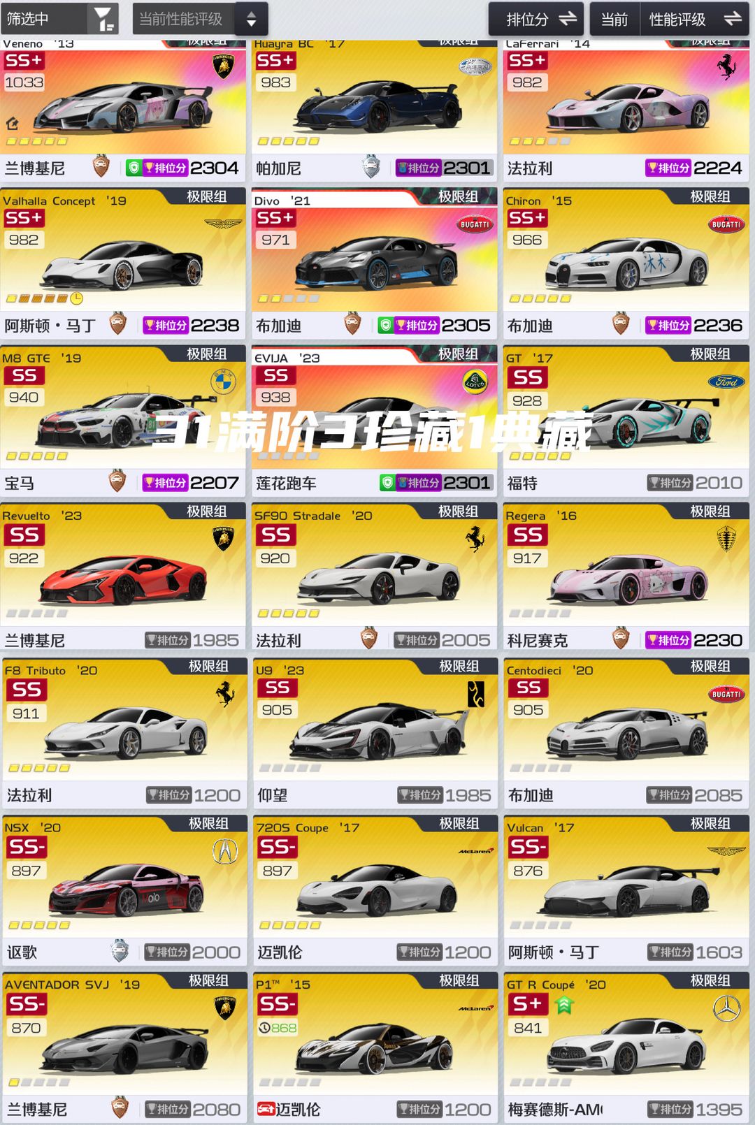 三端互通✨31辆满阶满改顶氪号/已充20W✨3珍藏1典藏满阶✨满阶满改毒药/帕加尼/雷文顿/康塔什等