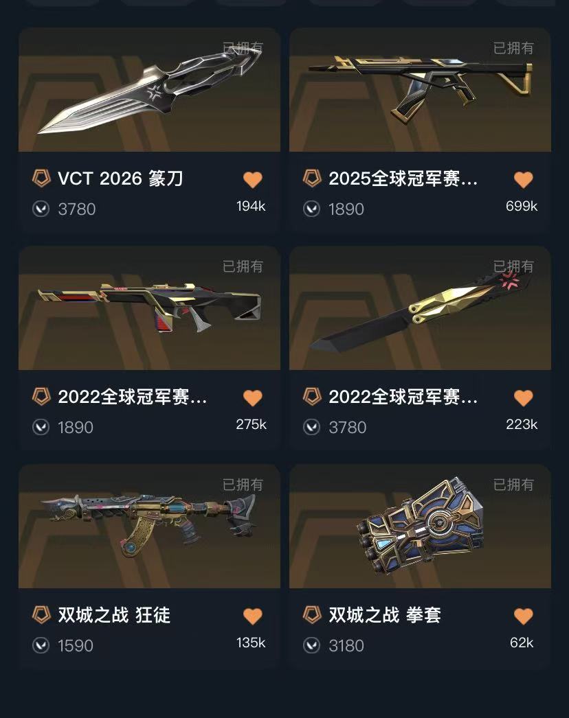 可排❤VCT26篆刀赋能挂❤2225冠军双城限定❤创纪元边陲奇点古神套❤掠夺噬影狮子猴子ak❤弃王狙