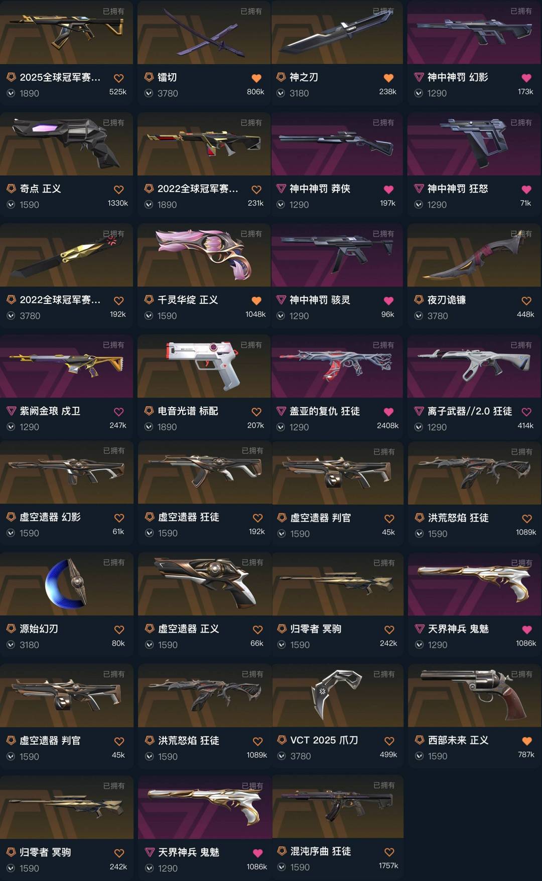 可排❤️25冠军套.盖亚虚无离子2.0洪荒混沌❤️镭切VCT爪刀.22冠军神中神罚.西部未来奇点天界