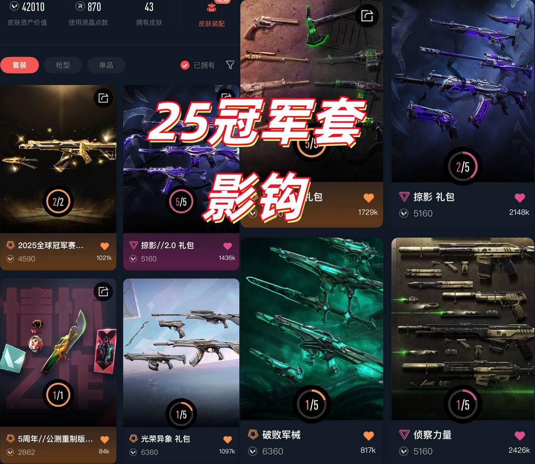 可排✅25冠军⭐光荣异象掠夺爪刀⭐神罚侦查蝴蝶刀⭐西部未来套装⭐盖亚混沌掠夺狂徒⭐破败幻影⭐