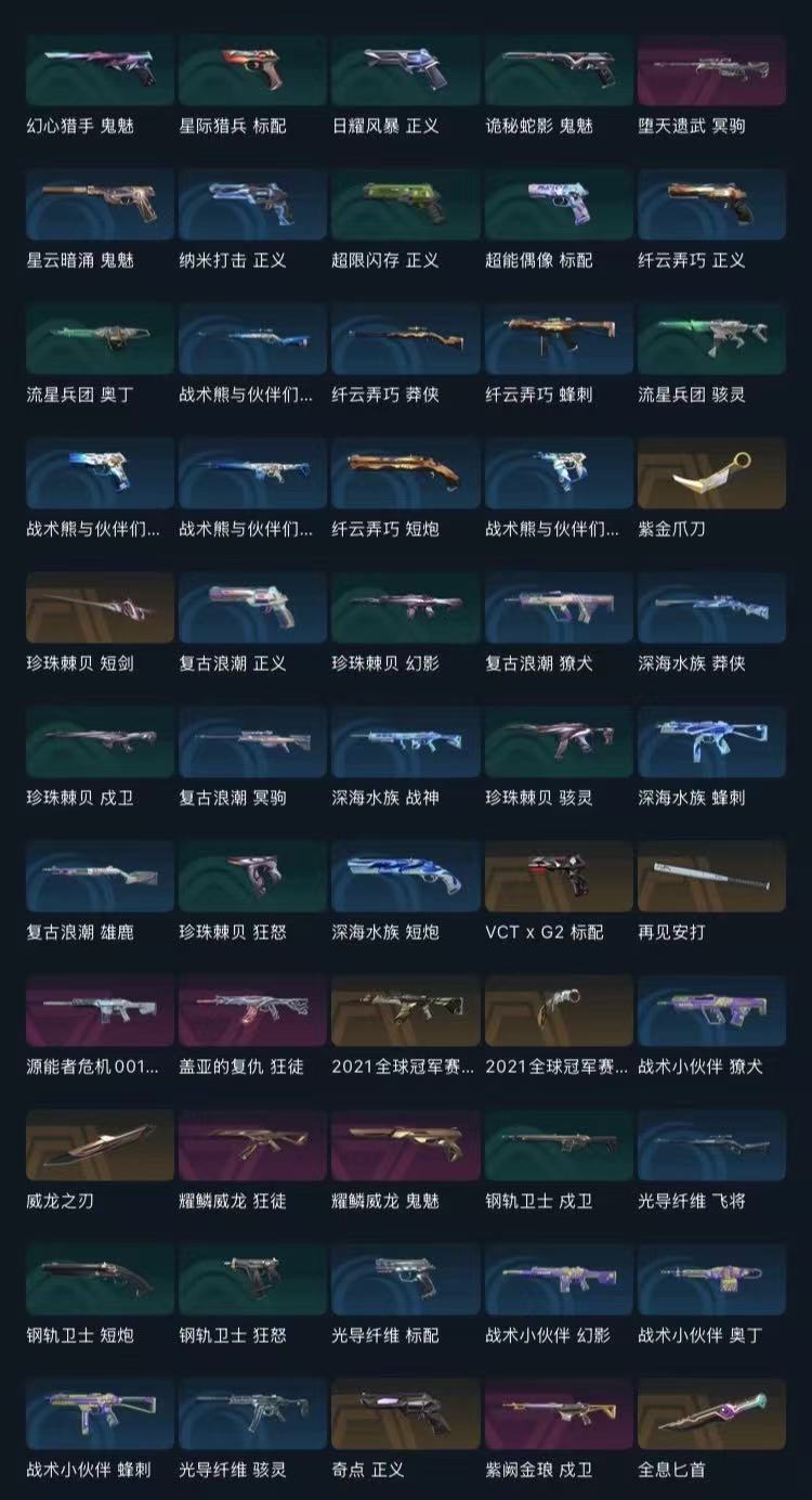 21套+漫画套+龙套+堕天大狙+紫金爪戍卫+G2标配+奇点正义+全息匕首+盖亚AK