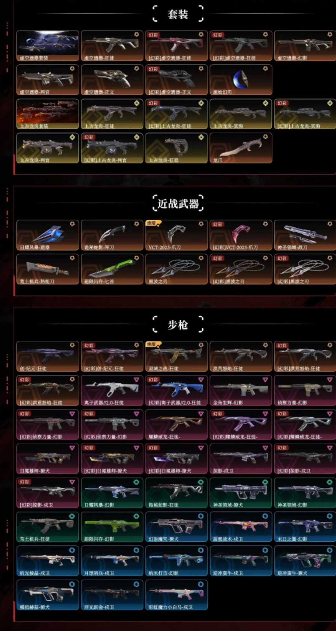 ❤️上古龙炎套❤️虚无套❤️黑波之刃❤️VCT爪刀❤️流脓狂徒❤️创纪元狂徒❤️全英雄❤️