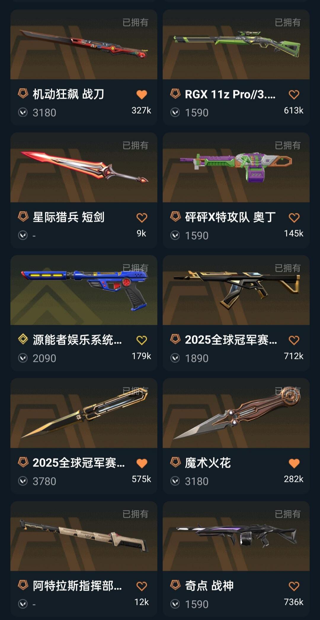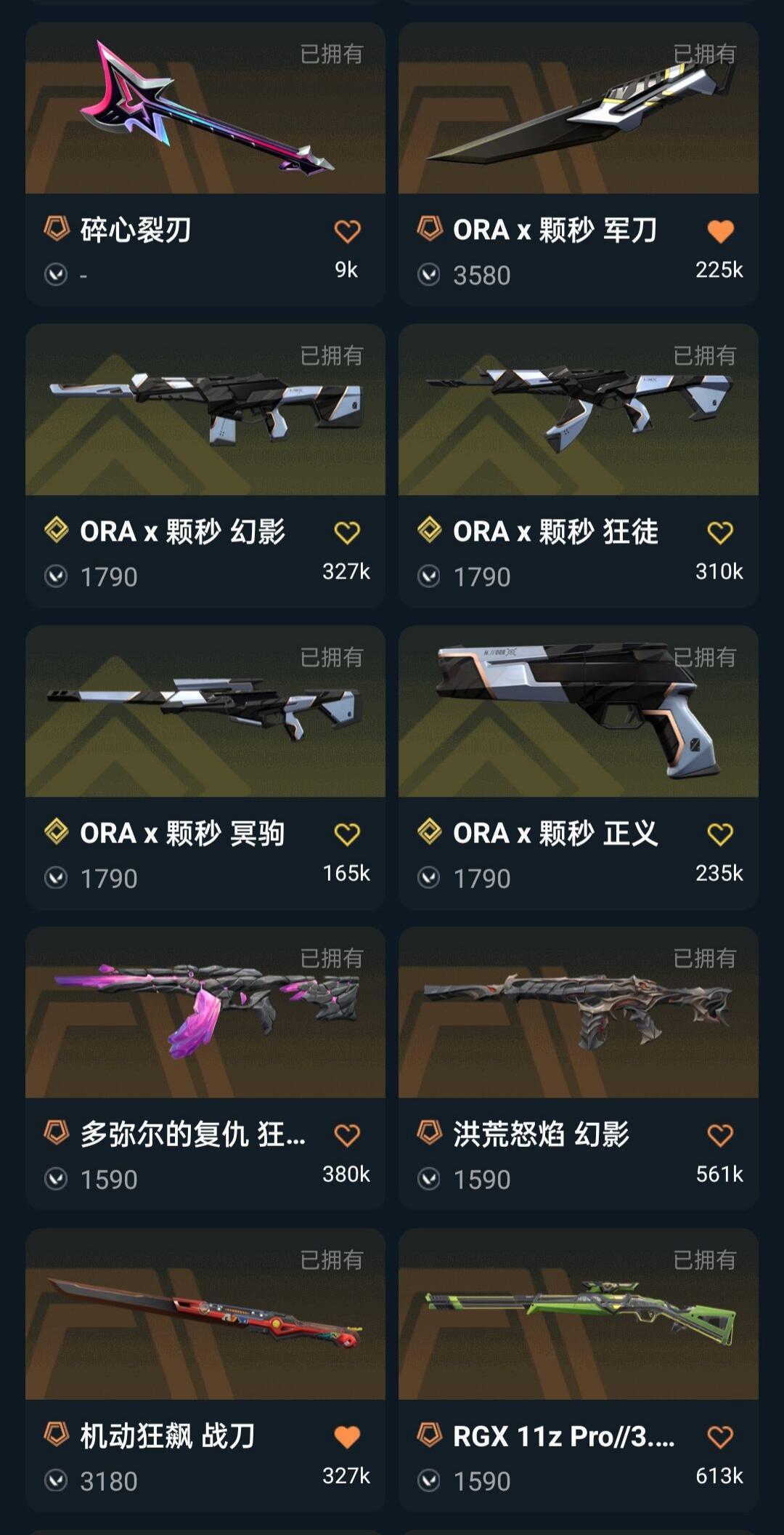 可排 悲悯ORA颗秒套2025冠军套机动战刀魔术火花显卡爪刀多弥尔掠影狂徒2022冠军流脓幻影