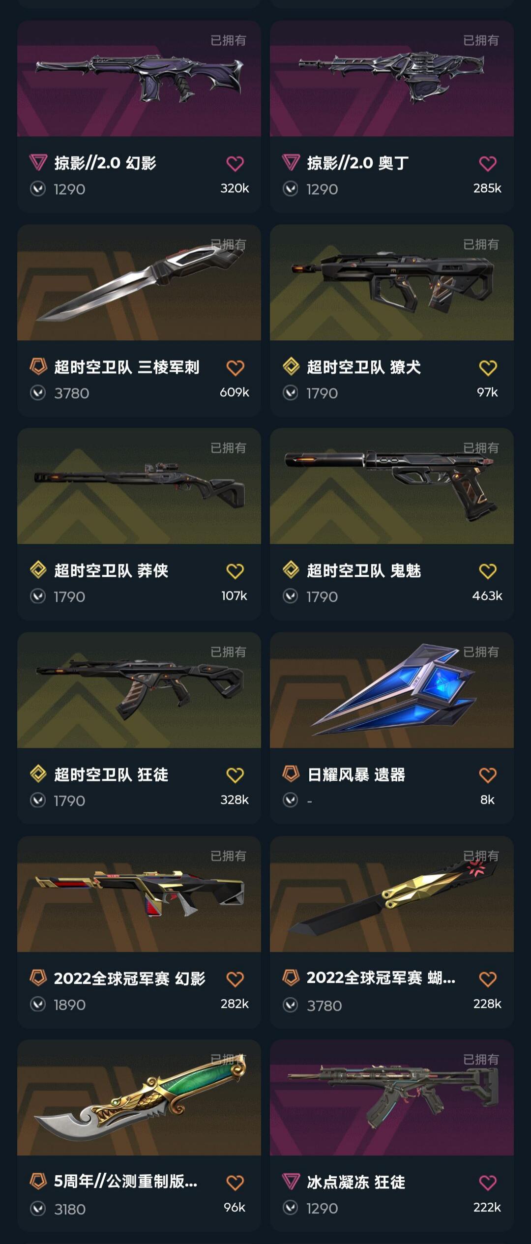 禁排 22冠军套超时空套掠影套套掠影2.0套黑波之刃光荣噬影塑水宗盖亚狂徒侦察幻影