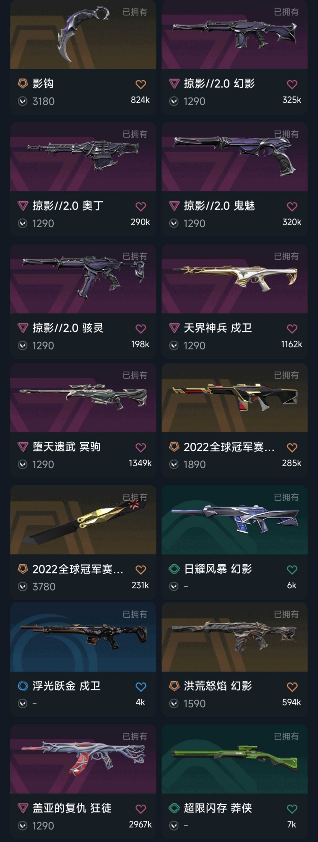 禁排!十万库存25/22冠军套♉千灵华绽2.0套掠影2.0套♏盖亚混沌狂徒奇点正义♐鬼丸影钩全炫彩洪