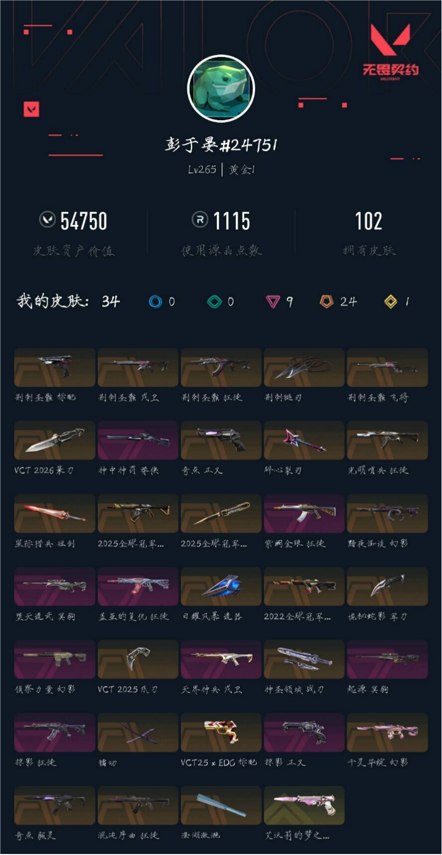 开挂必起诉✅可排位⭐25/22冠⭐玫瑰套⭐vct篆⭐混沌哨兵掠影紫金ak⭐莲花侦察古神m4⭐奇点正义