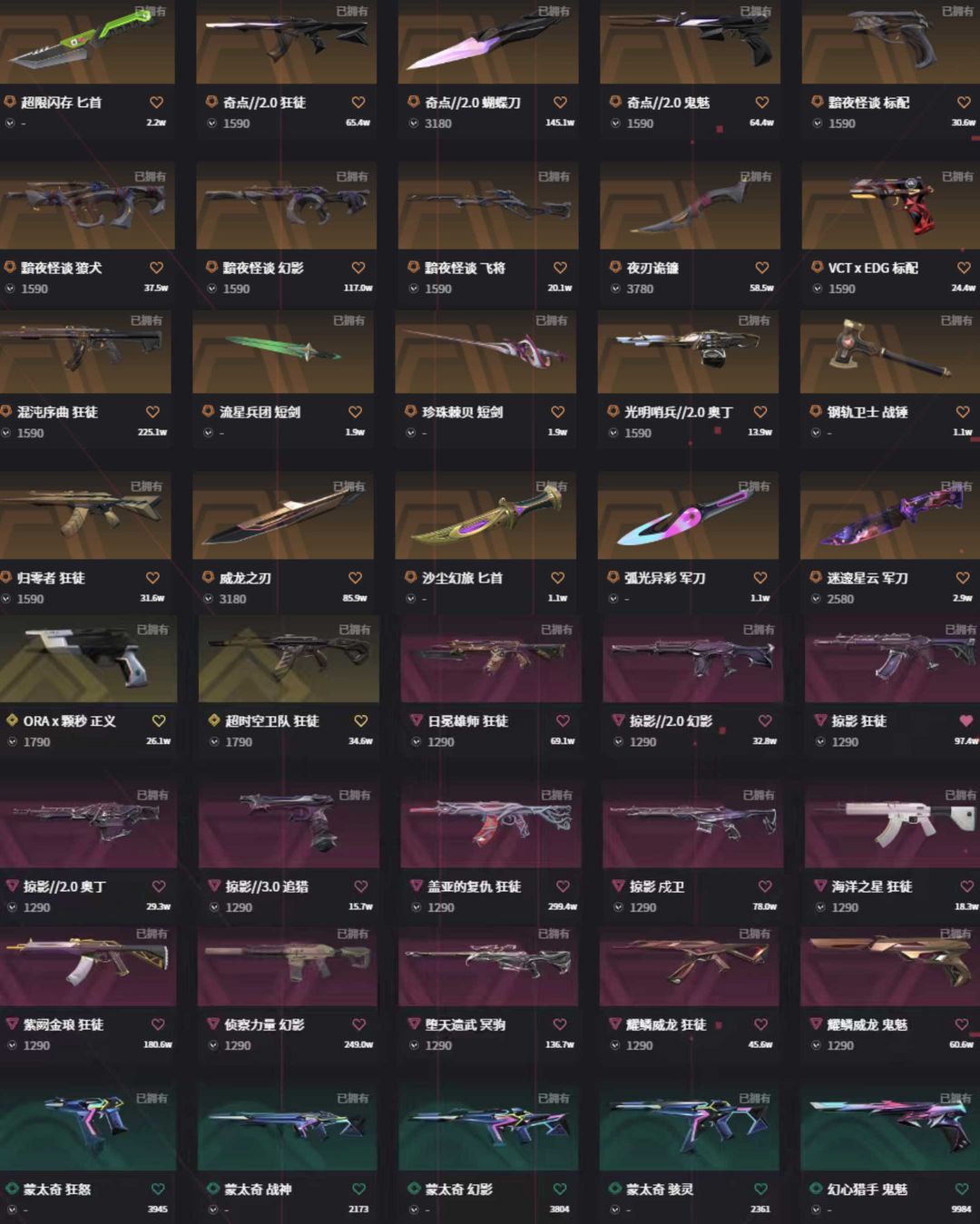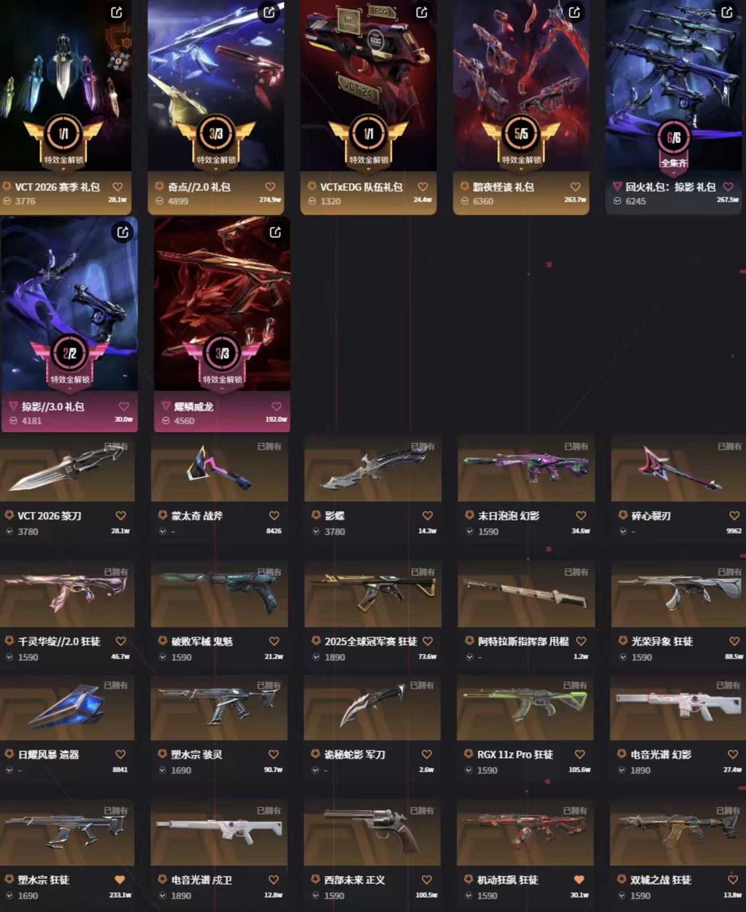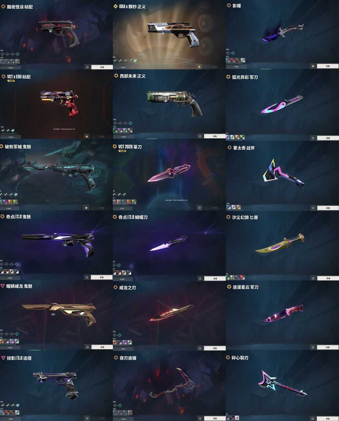 vct篆刀掠影3.0威龙黯夜套✨25冠光荣归零盖亚超时空混沌摩托莲花显卡ak✨黯夜末日电音侦察m4