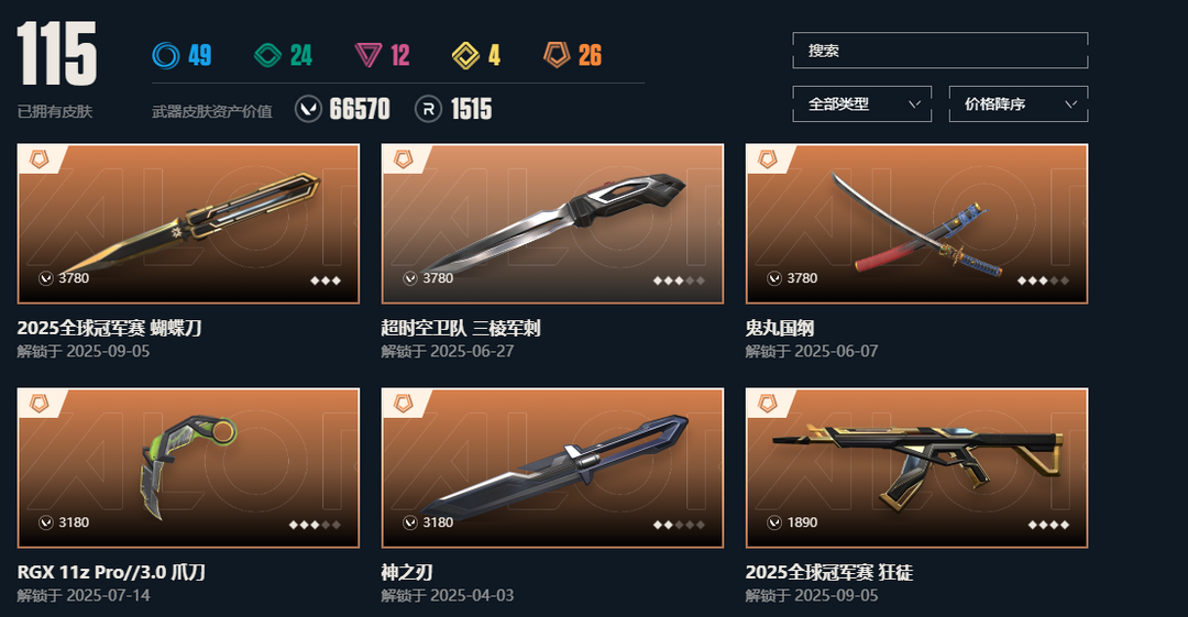 武器皮肤数量:115