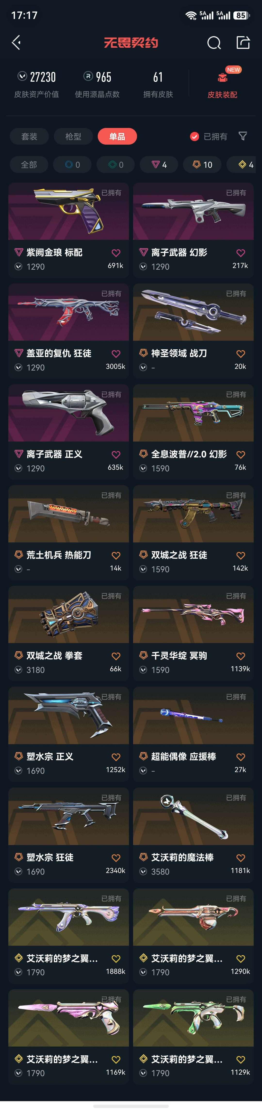 全角色,猫猫套,爆爆套狂徒:盖亚,塑水幻影:全息波普,离子正义:塑水,离子标配:紫金冥驹:莲花